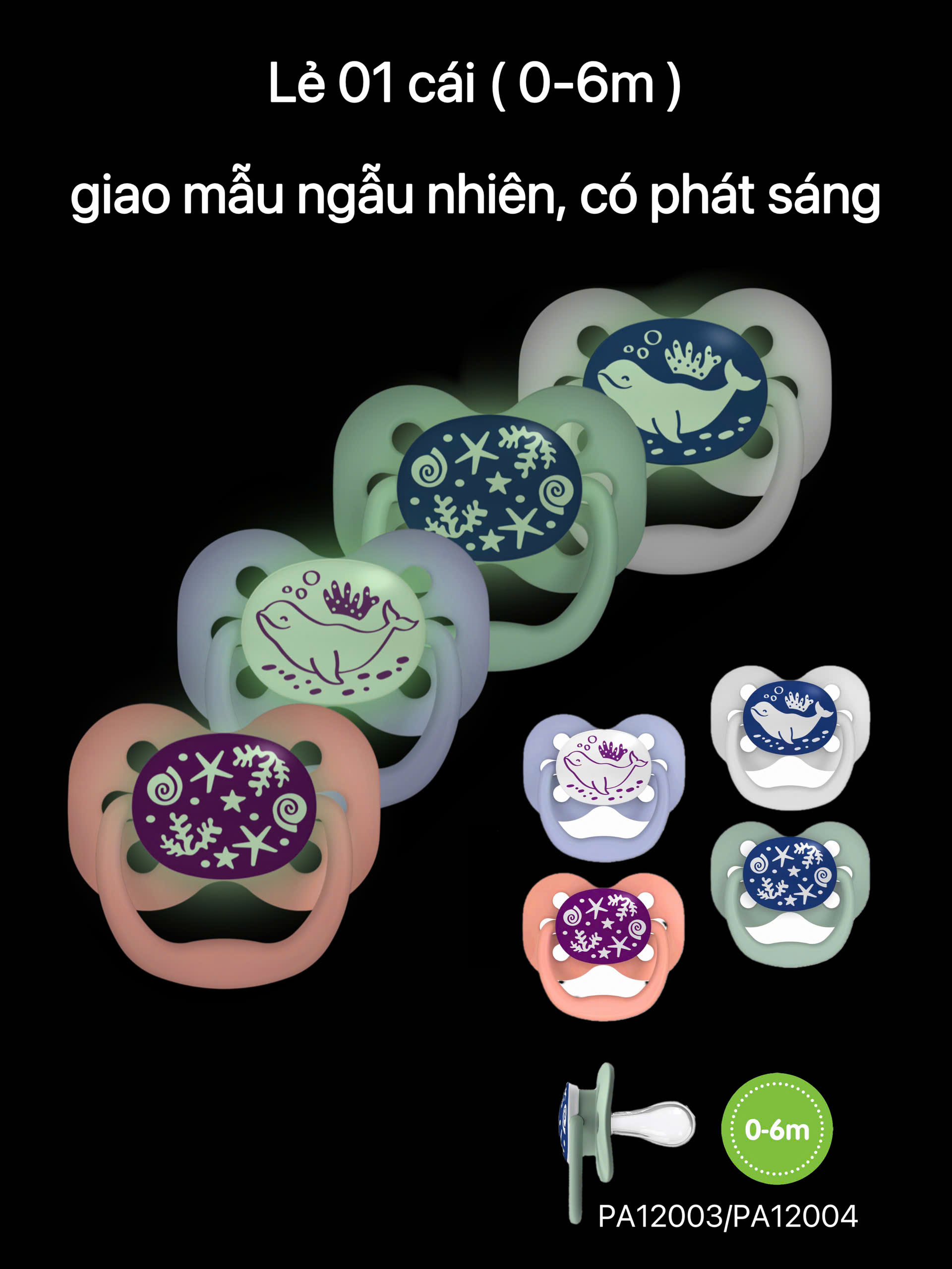 Dỗ bé bú sữa ngay từ khi sinh ra Vừa vặn, ngay cả vào ban đêm Có nút phát sáng trong bóng tối Thiết kế theo cấu trúc vòm miệng và không chứa BPA 1