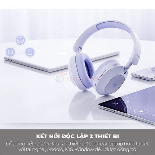 - Thiết kế chụp tai thoải mái kiểu dáng over-ear thời trang, đệm tai mềm mại, ôm sát tai, mang lại sự thoải mái