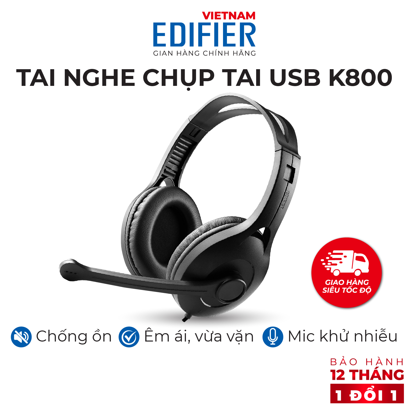 Tai nghe chụp tai có mic EDIFIER USB K800 Chống ồn Chân cắm USB