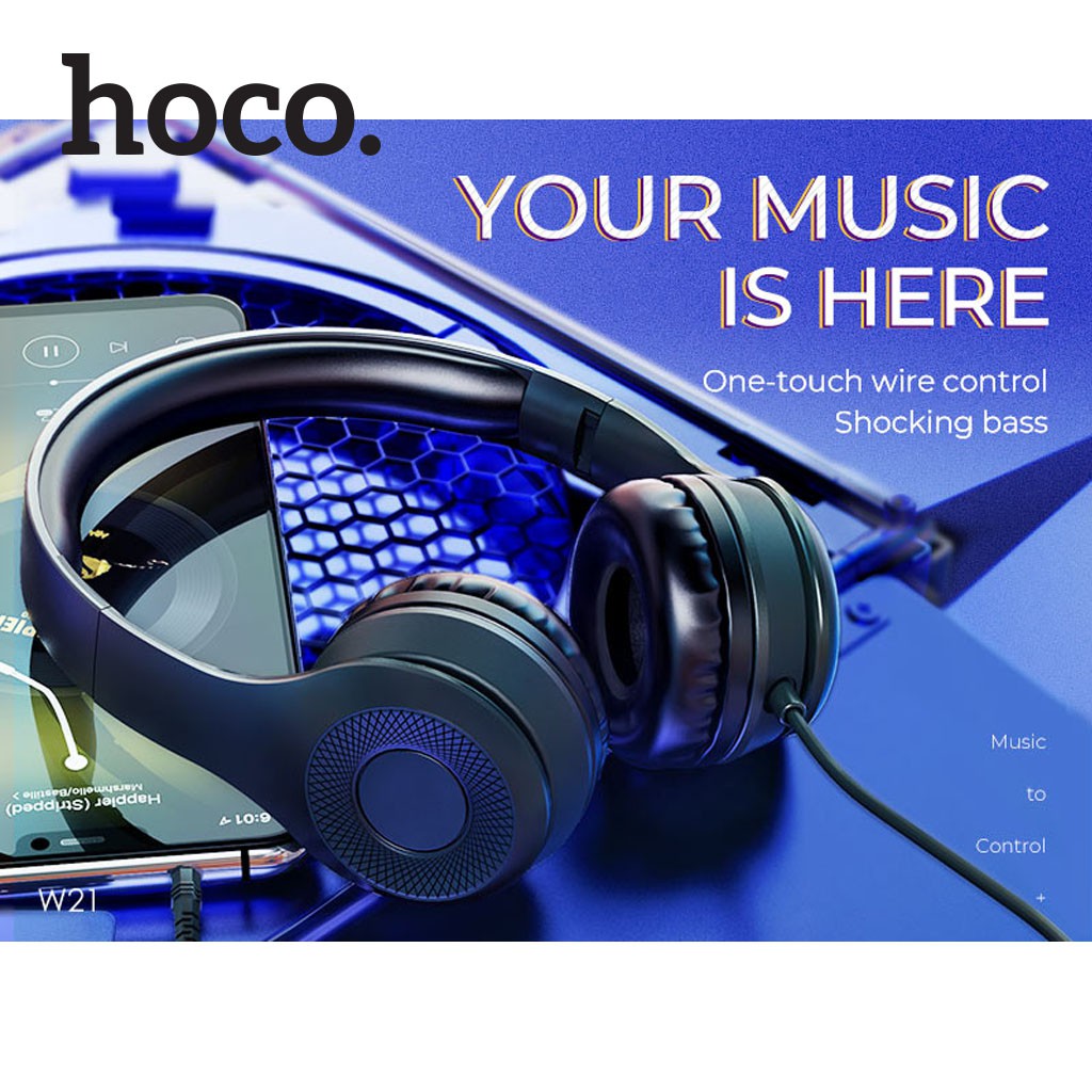 ✨Tai nghe chụp tai/ Monitor Headphones - Hoco W21 - Jack 3.5mm, Loa ngoài 40mm, Mic đàm thoại, Dây dài 1.2m, Mút đệm chống ồn và chống đau tai - Màu ngẫu nhiên - Hàng chính hãng