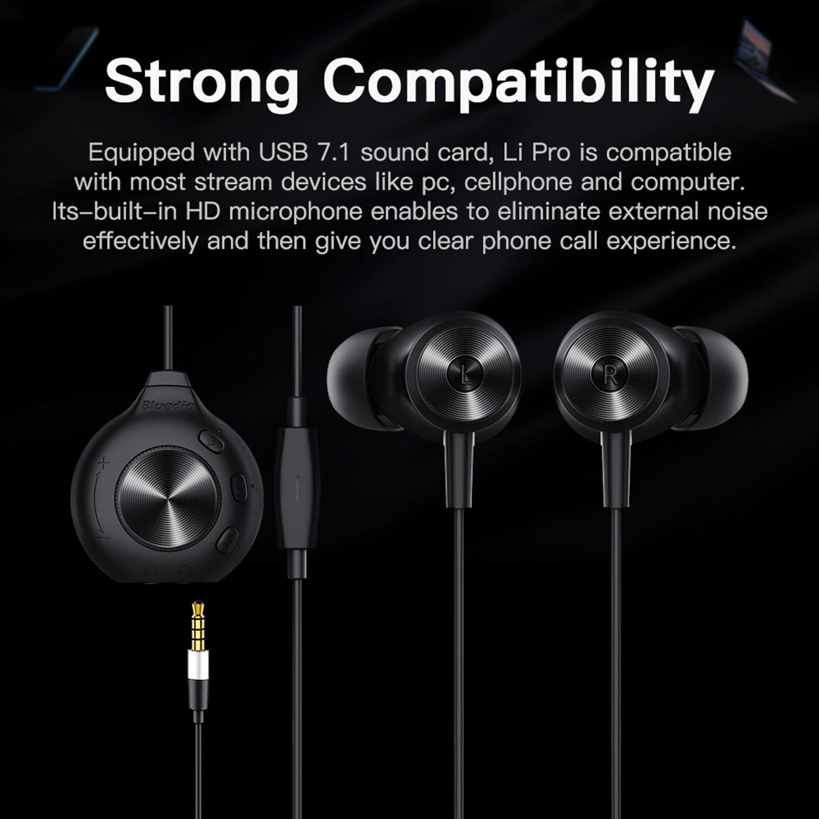 ✨Tai nghe có dây Bluedio Li Pro 3.5mm chống ồn 7.1 Card, âm thanh ảo, tích hợp micrô
