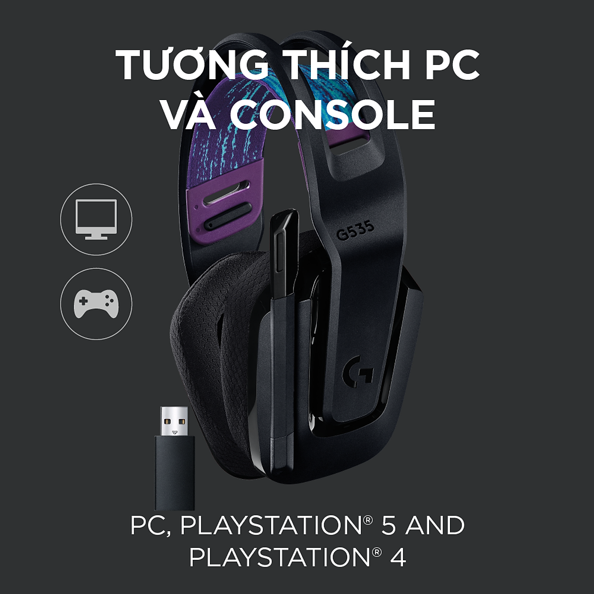 Tai nghe game không dây Lightspeed Logitech G535 - Trọng lượng nhẹ, âm thanh nổi, tương thích PC, PS4, PS5, Mic gấp để tắt tiếng Tai nghe chơi game không dây G535 đem đến cho bạn hiệu suất, sự tự do và thoải mái trong tất cả những buổi chơi game. Công nghệ LIGHTSPEED không dây tiên tiến có độ trễ thấp đem lại sự tự do không dây đáng tin cậy lên tới 12 m và thời lượng pin đáng kinh ngạc 33 giờ.(1) Màng loa 40 mm đem lại âm thanh nổi rõ ràng, trong trẻo và sâu lắng. Chỉ nặng 236 gram, quai đeo có thể điều chỉnh và chụp tai bằng cao su non mềm mại đảm bảo sự thoải mái suốt ngày. Các nút điều khiển trên tai nghe cho phép bạn nhanh chóng tăng âm lượng trò chơi hoặc âm nhạc. Chỉ cần gấp lên để tắt tiếng và giấu gọn gàng. G535 đã được chứng nhận Discord để đảm bảo đem lại hiệu suất giao tiếp rõ như pha lê với âm thanh và độ rõ ràng giọng nói tuyệt vời. - LIGHTSPEED không dây cho kết nối nâng cao, đáng tin cậy. - Thời lượng pin để chơi game là 33 giờ - Chỉ 236 gram - Thiết kế co dãn với đệm tai làm từ cao su non đem lại sự thoải mái suốt cả ngày - Điều khiển âm lượng trên tai và mic gấp-để-tắt tiếng - Màng loa 40 mm cho âm thanh nổi rõ ràng, trong trẻo - Được chứng nhận Discord cho cuộc giao tiếp rõ ràng - Hoạt động với PC và PlayStation LIGHTSPEED không dây: Công nghệ không dây LIGHTSPEED cấp độ chuyên nghiệp đem lại thời lượng pin 33 giờ (1) và sự tự do không dây đáng tin cậy lên tới 12 m Trọng lượng nhẹ và thoải mái Nặng chỉ 236 gram, G535 nhỏ và nhẹ hơn G733; quai đeo co dãn hai mặt giúp phân phối trọng lượng và có thể điều chỉnh cho độ vừa vặn tùy chỉnh Cắm vào là sử dụng được: Tối ưu hóa thời gian chơi của bạn với tai nghe chơi game dễ dùng, cắm vào là sử dụng; G535 sử dụng kết nối USB tương thích với PC và các thiết bị chơi game PlayStation Tương thích PC và máy chơi game: PlayStation 5, PlayStation 4 Điều khiển trên khung tai nghe Nút xoay âm lượng nằm trực tiếp trên khung tai nghe, để nhanh chóng tăng âm lượng trò chơi, âm nhạc hay cuộc trò chuyện của bạn; chỉ cần gấp micrô lên để tắt tiếng và cất gọn Màng loa 40 mm Với màng loa neodymium 40 mm, chiếc tai nghe chơi game không dây này đem lại âm thanh nổi rõ ràng, trong trẻo và sâu lắng, giúp cho trò chơi của bạn trở nên chân thực hơn. Thoải mái suốt ngày Chụp tai bằng cao su non thoải mái và vật liệu vải lưới thể thao lý tưởng khi sử dụng lâu dài G535 đã được chứng nhận Discord để đảm bảo đem lại hiệu suất giao tiếp rõ như pha lê với âm thanh và độ rõ ràng giọng nói tuyệt vời YÊU CẦU HỆ THỐNG: Cổng USB cho LIGHTSPEED: Windows 10, macOS X 10.14 trở lên Kết nối Internet cho Phần mềm G HUB của Logitech (2) TRONG HỘP GỒM - Tai nghe chơi game G535 - Quai đeo mềm hai mặt (đi kèm) -