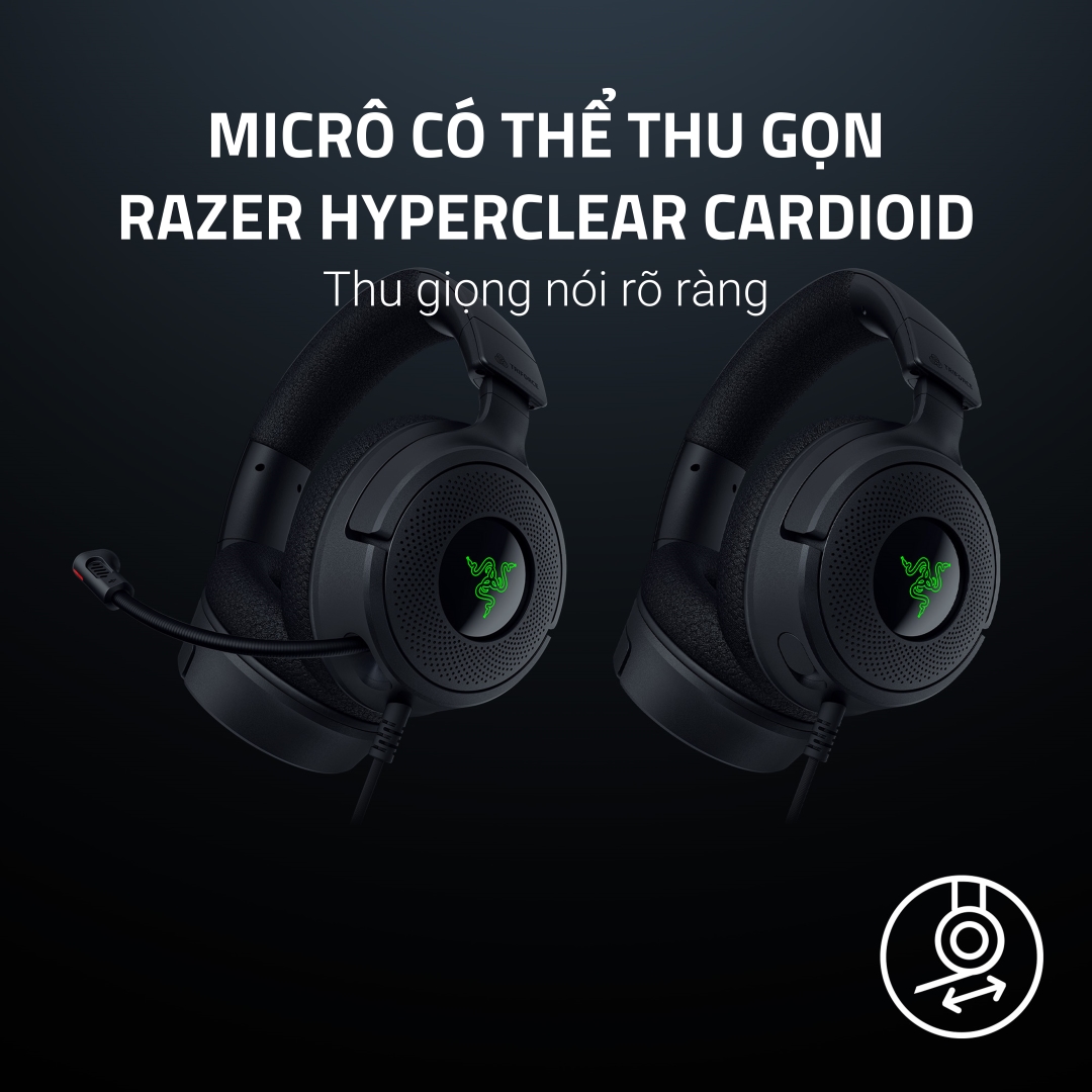 TRÌNH ĐIỀU KHIỂN Razer TriForce 40mm MICRÔ Micrô Razer HyperClear Cardioid có thể thu gọn ÂM THANH VÒM Âm thanh vòm 7.1 KẾT NỐI Có dây, USB Type-C hoặc USB Type-A (qua bộ chuyển đổi đi kèm) THỜI LƯỢNG PIN - TRỌNG LƯỢNG 300g