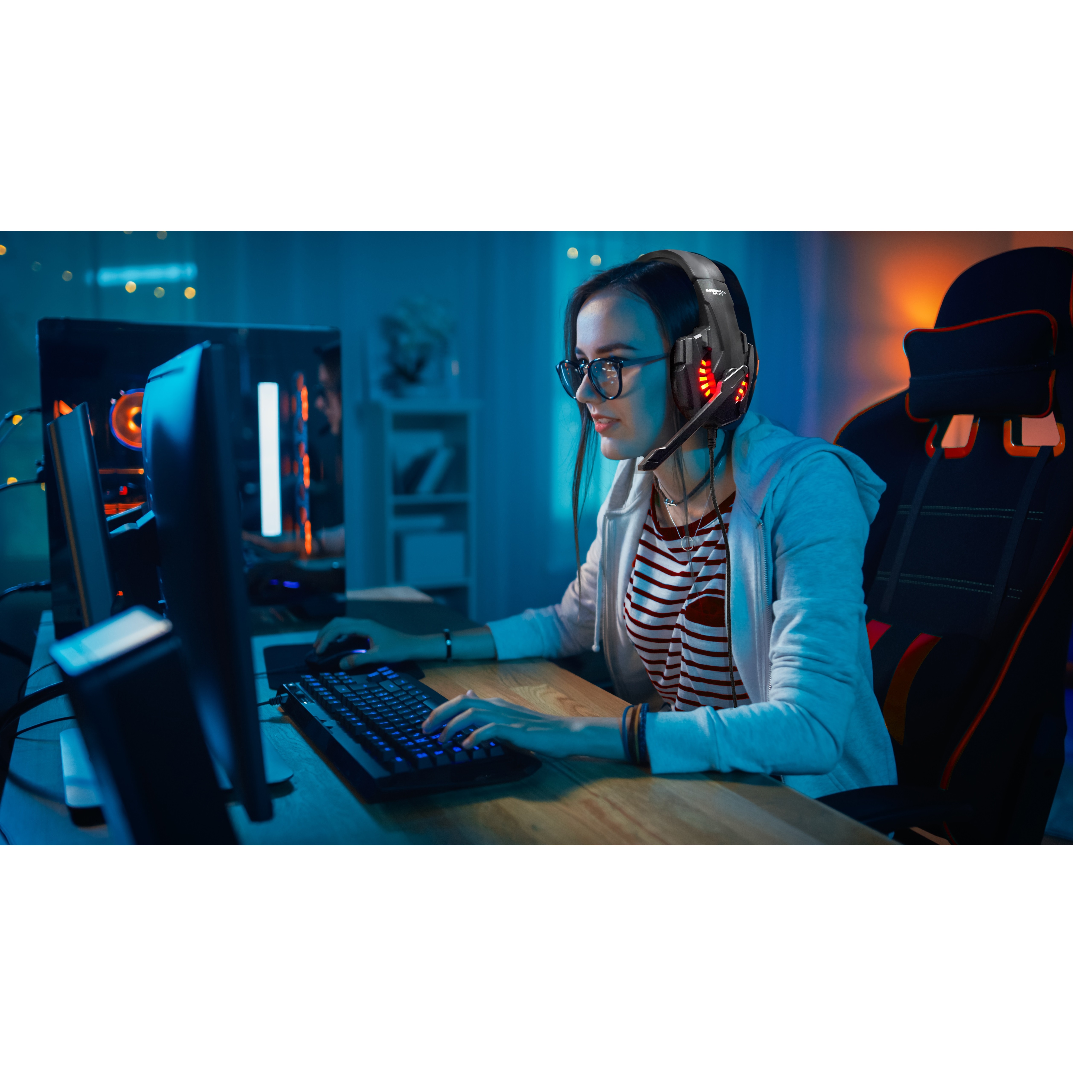Tai nghe chơi game AOC GH210, LED đỏ, P2, Trình điều khiển 50mm, Đen và Đỏ Nghe mọi âm thanh xung quanh bạn với tai nghe GH210 , được thiết kế để mang lại chất lượng âm thanh tốt