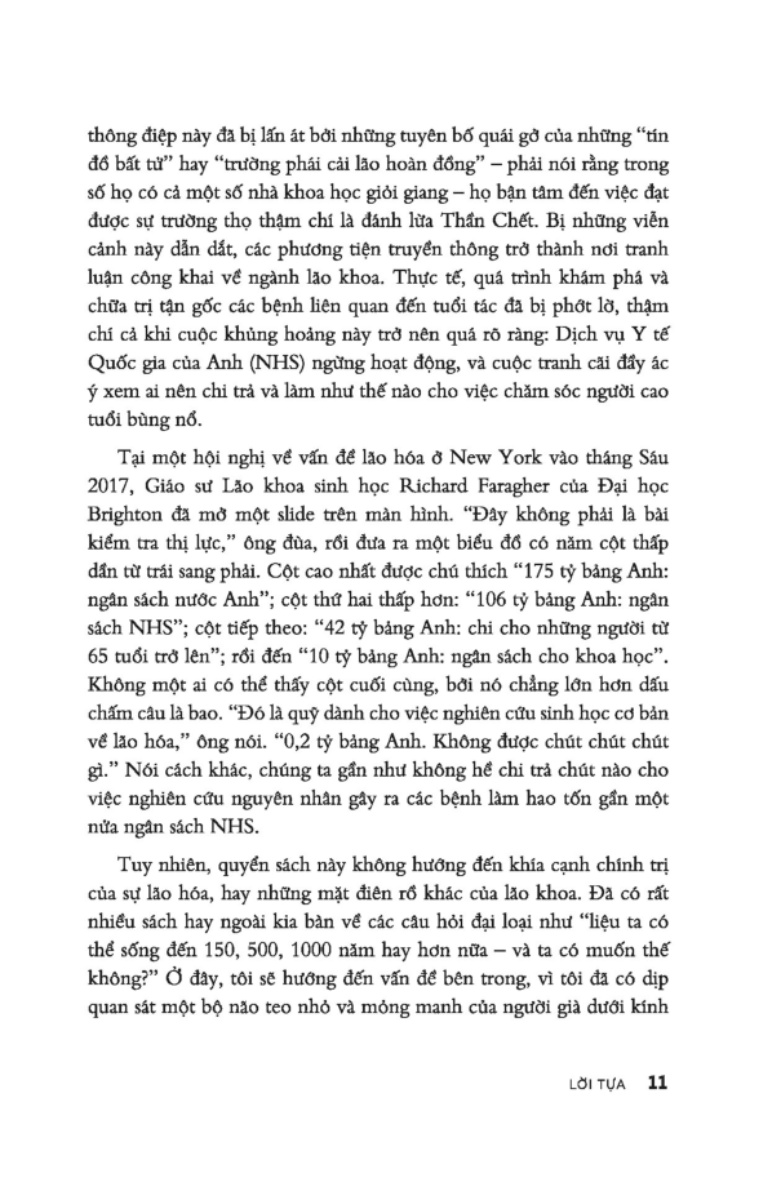 Mua tại TiktokTại Sao Chúng Ta Lại Già Đi? - Hiểu Đúng Về Lão Hóa Lão hóa là vấn đề mà tất cả chúng ta đều quan tâm, tuy nhiên chưa có sự đồng thuận và thống nhất giữa các nhà khoa học về nguyên nhân và cơ chế của quá trình này. Có người thì cho rằng đó là quá trình hao mòn cơ bản, người thì tin rằng đây là quy luật được lập trình sẵn để kiểm soát về mặt di truyền, thậm chí có người tin rằng lão hóa là bệnh, có thể được đề ị nhằm kéo dài tuổi thọ đến vô tận… Trong cuốn sách này, Sue Armstrong sẽ kể câu chuyện về quá trình tìm hiểu sự lão hóa; trình bày các nghiên cứu, phát kiến mới nhất của khoa học về quá trình này.