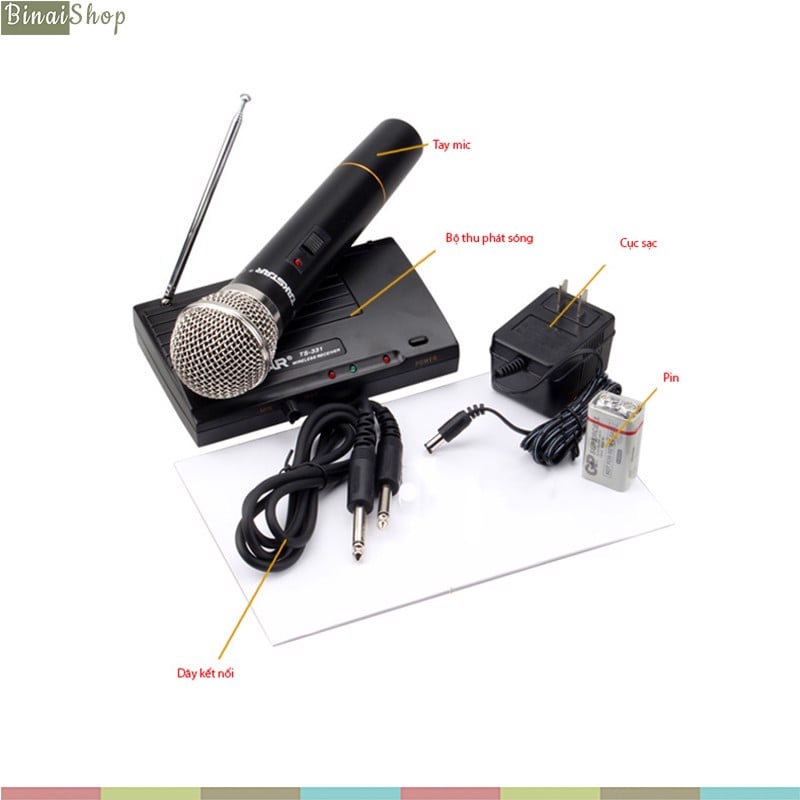 Mua tại TiktokTakstar TS-331 là một bộ 1 mic không dây truyền tín hiệu bằng sóng VHF với mạch phản hồi hiệu quả, công tắc tắt bật khử nhiễu cùng khả năng tiết kiệm pin bởi lượng tiêu thụ pin rất thấp. Sản phẩm có thể dùng cho nhiều ứng dụng như thuyết trình, biểu diễn, giảng dạy, hát karaoke, dùng cho hội nghị,… TÍNH NĂNG CƠ BẢN