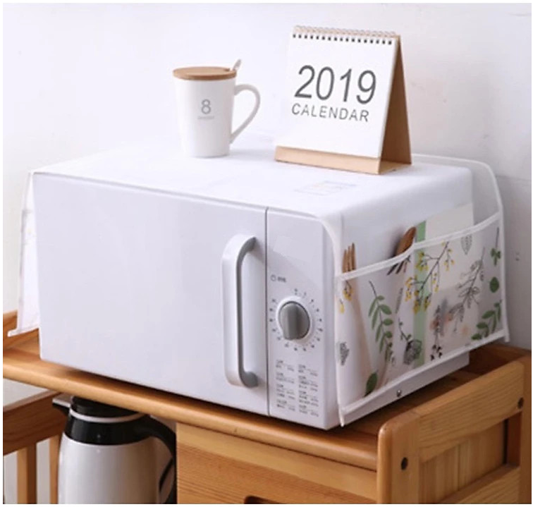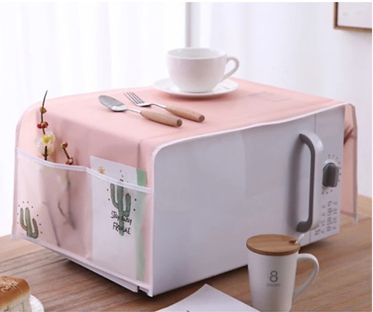 Áo trùm lò vi sóng. Áo phủ lò vi sóng bao trùm được toàn bộ lò vi sóng, phía bên hông còn có ngăn để đựng các dụng cụ nhà bếp gọn gàng, giúp bạn