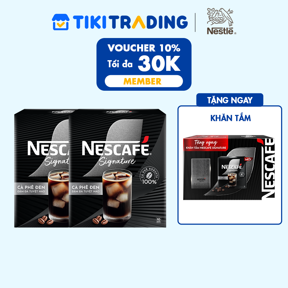 ✨[Tặng 01 Khăn tắm NESCAFÉ Signature] Combo 2 hộp Cà phê đen hòa tan NESCAFÉ Signature Hộp 10 gói ĐẬM ĐÀ TUYỆT HẢO