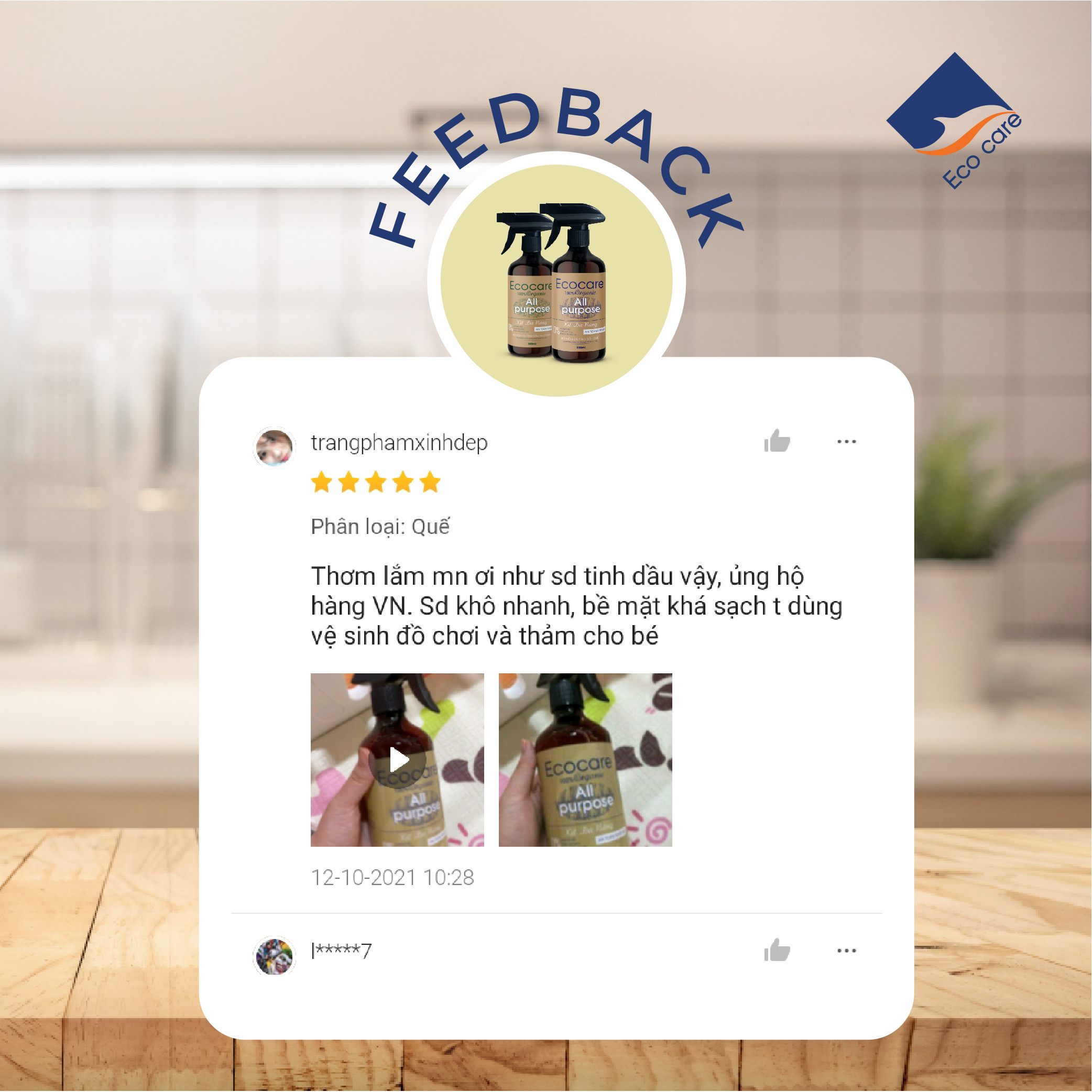 Bình Xịt Tẩy Đa Năng hữu cơ Bồ hòn Ecocare 500ml, chất tẩy đa năng tinh dầu tự nhiên dùng làm nước lau bếp, nước lau bàn ăn THÔNG ĐIỆP TỪ NHÀ SẢN XUẤT