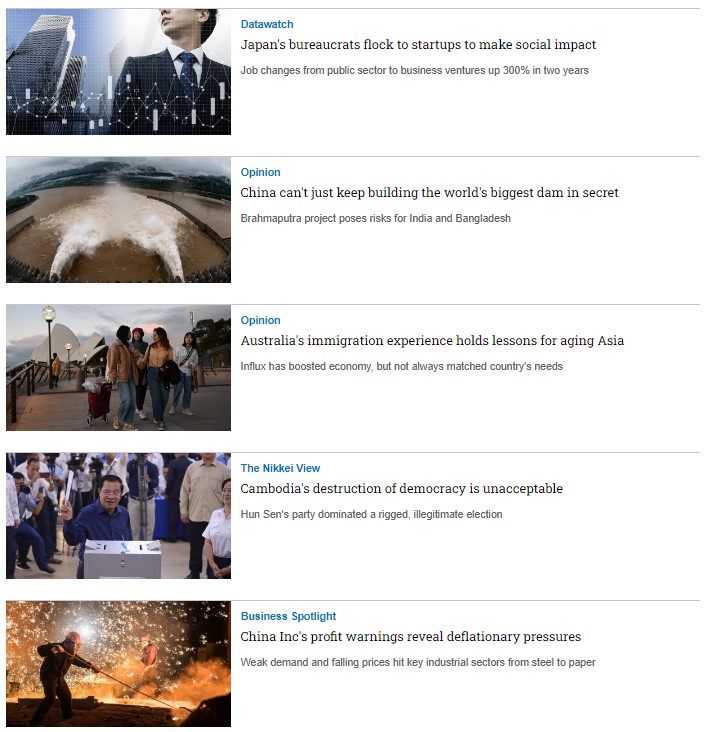Nikkei Asia là tạp chí tiếng Anh có tên tuổi thuộc tập đoàn Nikkei - Nhật Bản, chuyên viết về những xu hướng kinh tế, công nghệ, chính trị của các nước trong khu vực