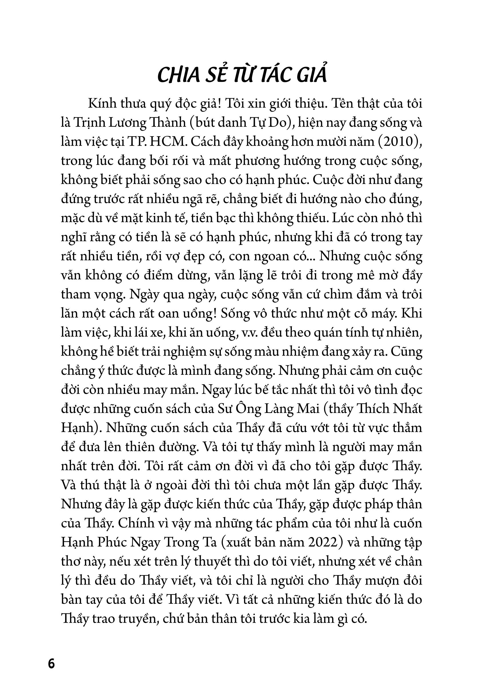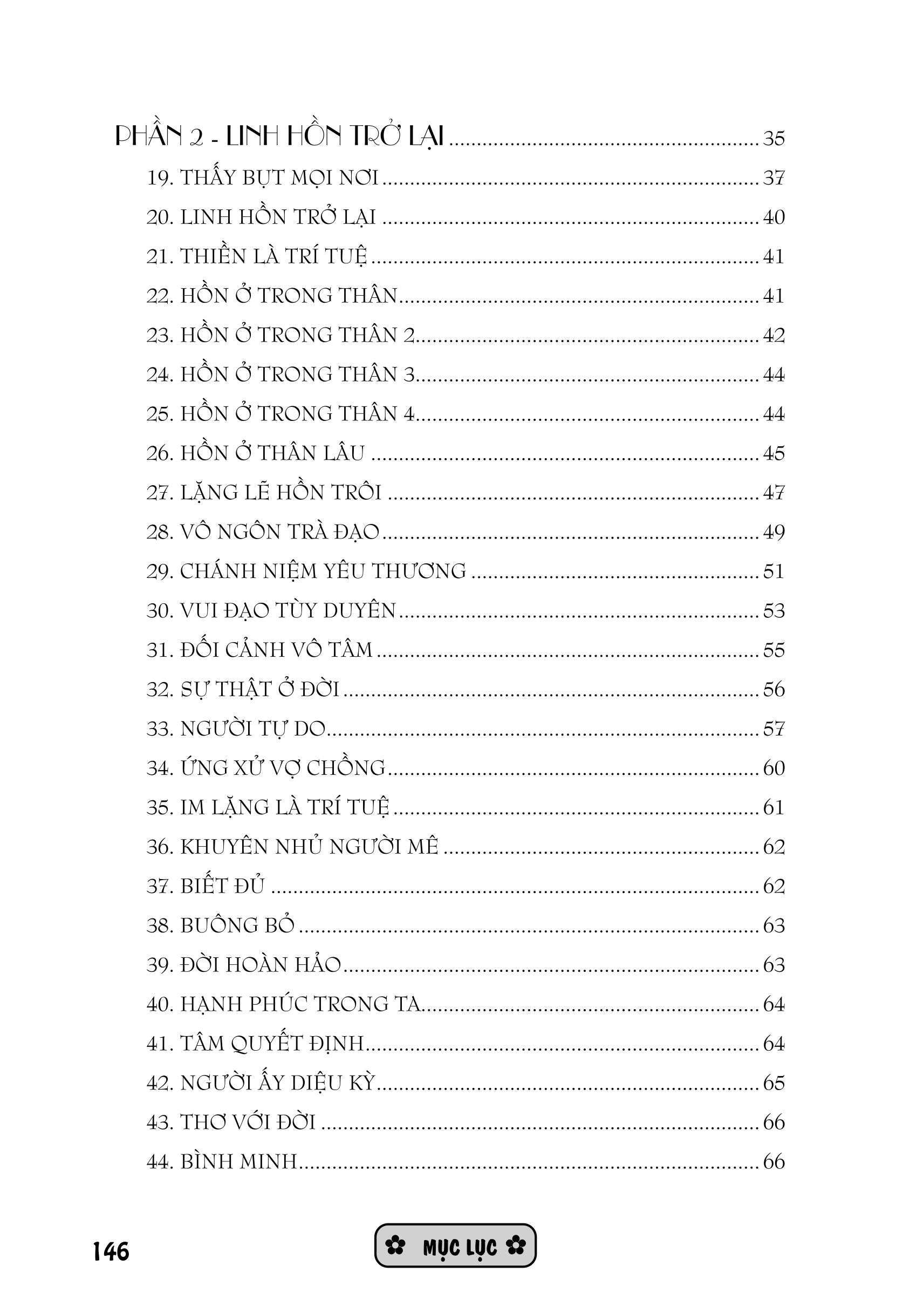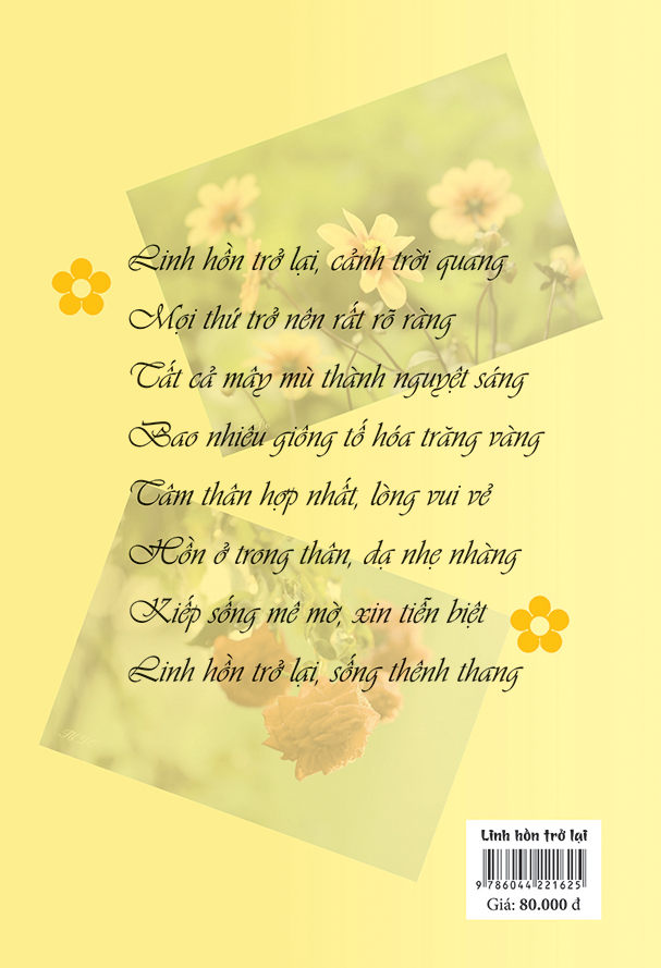 Kính thưa quý độc giả! Tập thơ Linh Hồn Trở Lại là một công phu thiền quán mà tôi đã đúc kết trong cuộc sống một cách rất sâu sắc. Và mong muốn đóng góp một phần nhỏ nhoi để truyền tải một thông điệp sống tích cực đến với mọi người.