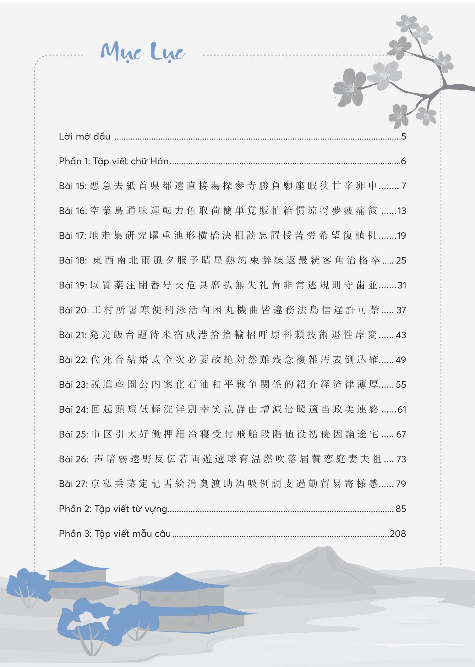 Phần 3 : Tập viết mẫu câu dựa theo nội dung các bài học kiến thức tiếng Nhật cần thiết và phổ biến nhất hiện nay. Trong đó mỗi bài học đều có sự liên quan, tiếp nối, việc học sẽ trở nên hiệu quả và dễ dàng hơn.