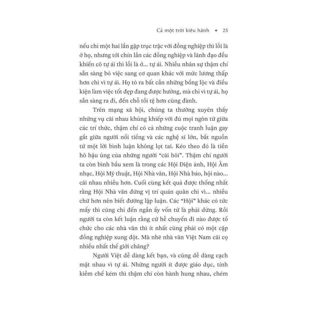 Người nào sáng ngủ dậy cảm thấy ngại đi làm, ấy là vì không được làm công việc mình thích, mình đam mê và sở nguyện không thỏa mãn, lại chẳng được trọng dụng, đồng nghiệp thì khó ưa, sếp thì chẳng đủ tài để mà phục. Đó đã là bất hạnh nửa cuộc đời, vì ngoài thời gian đi ngủ và đánh răng rửa mặt ra, một nửa thời gian của đời người là gắn bó với công việc. Chiều tan sở làm mà bụng cảm thấy không muốn về nhà, vì về nơi ấy chẳng có gì vui, chi bằng tấp quán bia mà dzô dzô trăm phần trăm đến tối khuya hẵng về, thôi thì gộp cả hai là bất hạnh cả cuộc đời.”