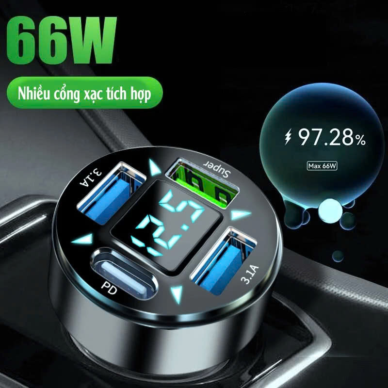 Tên sản phẩm - Sạc nhanh PD66W Màn hình kỹ thuật số 3.1A sạc ô tô bốn trong một Chất liệu sản phẩm - Hợp kim nhôm ABS Trọng lượng sản phẩm “ 26G Kích
