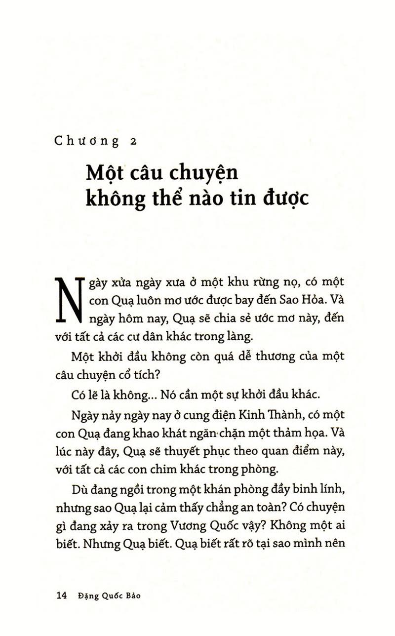 Như cuộc rong chơi, bạn đọc sẽ tìm thấy chính mình trong câu chuyện của một chú quạ, thấy những người quen của mình qua các cư dân của Vương Quốc, rồi sẽ tự khám phá bản thân và chinh phục được thính giả bằng kỹ năng trình bày. Đó là cách mà tác giả Đặng Quốc Bảo - nguyên chủ tịch câu lạc bộ diễn thuyết Sài Gòn - kỳ vọng ở bộ sách này, và đó chính xác là điều anh đem đến cho độc giả. Một bộ sách hướng dẫn kỹ năng cho người trẻ theo phong cách mới mẻ.