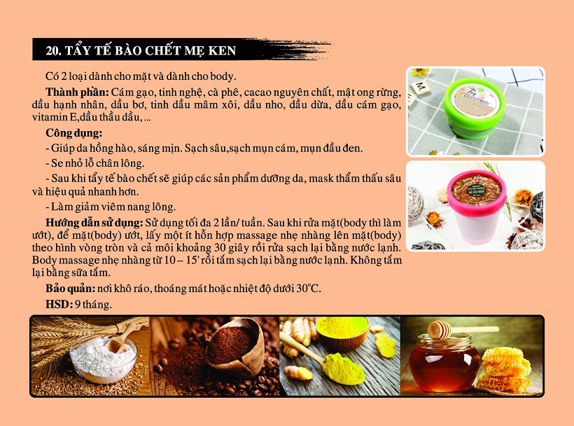 TẨY TẾ BÀO CHẾT BODY MẸ KEN *THÀNH PHẦN : cám gạo, tinh nghệ, cà phê, cacao nguyên chất, mật ong rừng, dầu hạnh nhân, dầu bơ, tinh dầu mâm xôi, dầu nho, dầu