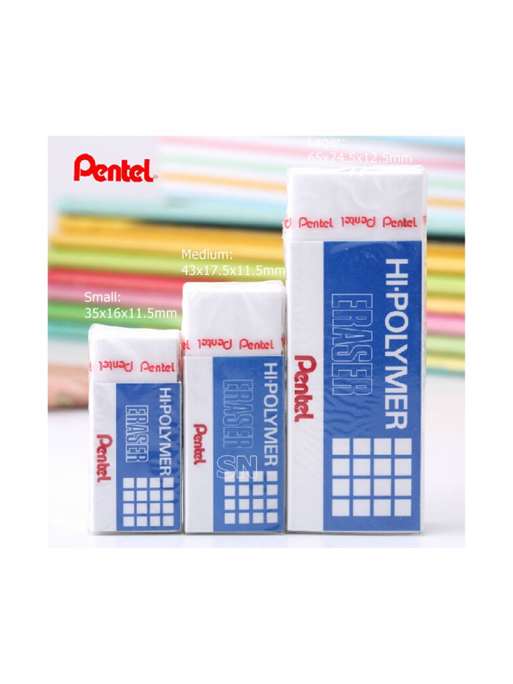 Pentel Hi-polymer Eraser ZEH-03, in Small, Medium, Large, Huge Sizes, Non-shedding Small Eraser. Stu