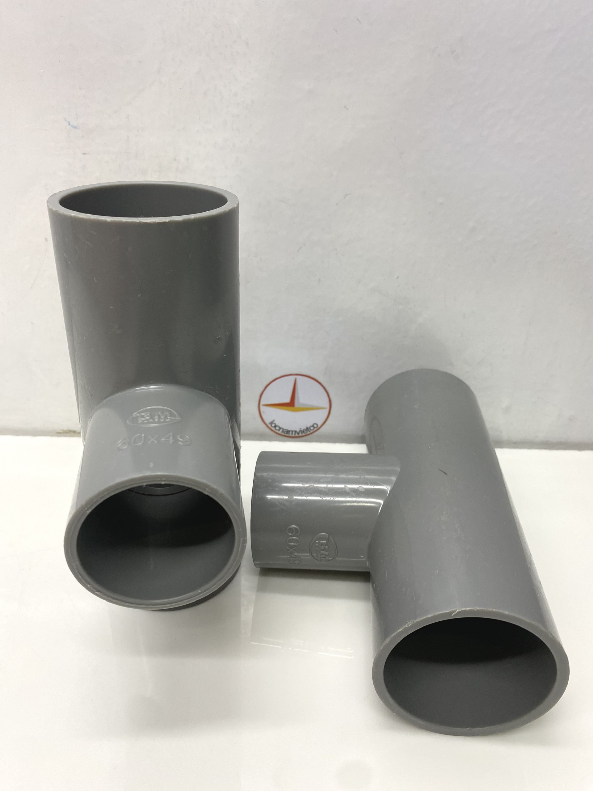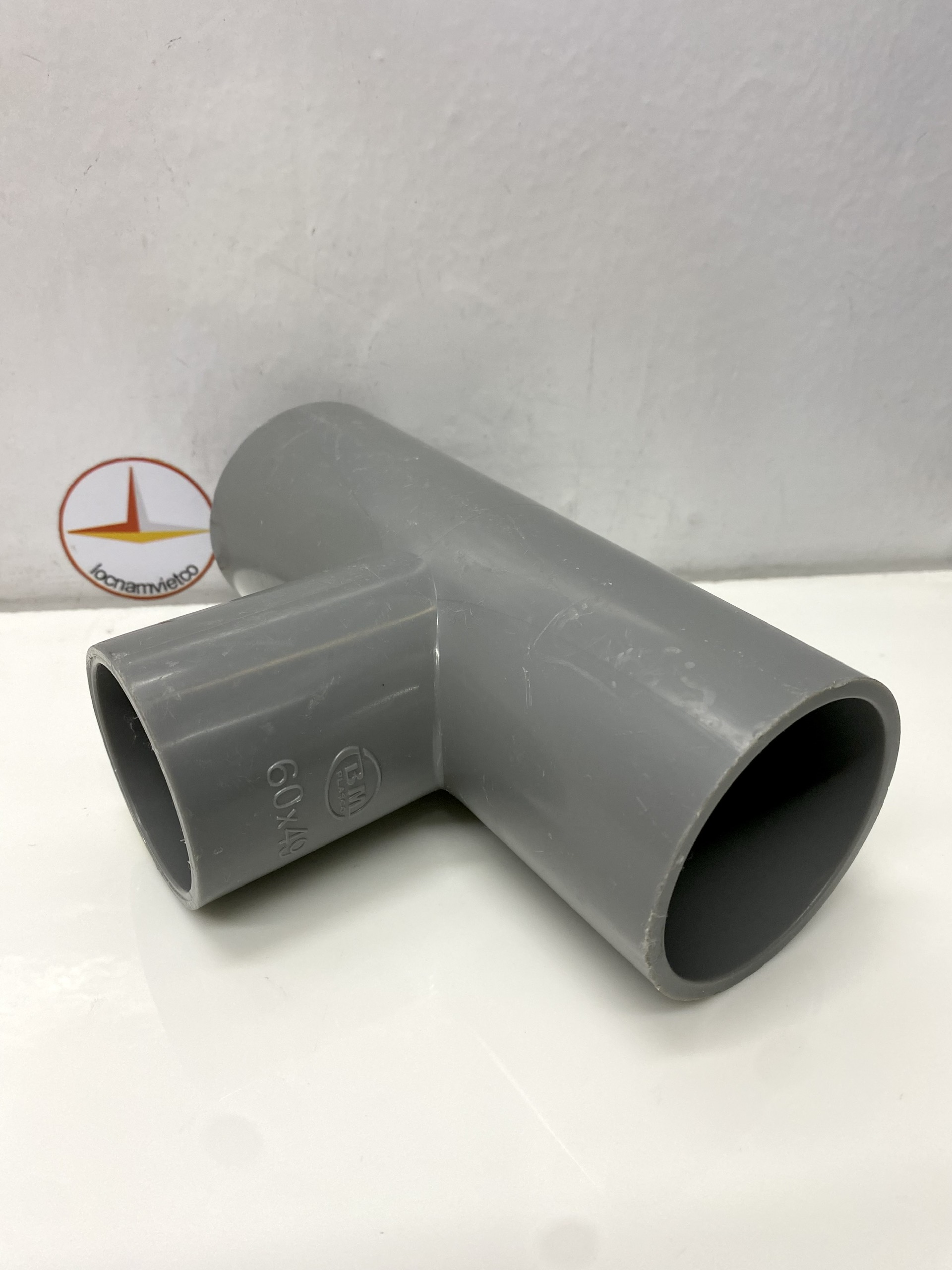 Mua tại TiktokTê giảm 60 x 49 nhựa PVC Bình Minh _ T60x49 Tê giảm hay còn gọi là tê rút (Tiếng anh Reducing Tee). Chữ tê giảm dùng chia nước từ đường ống sẵn có ra thêm một ống nhỏ hơn ống hiện tại vuông góc 90 độ của ống đang đi sẵn. Đặc Điểm: