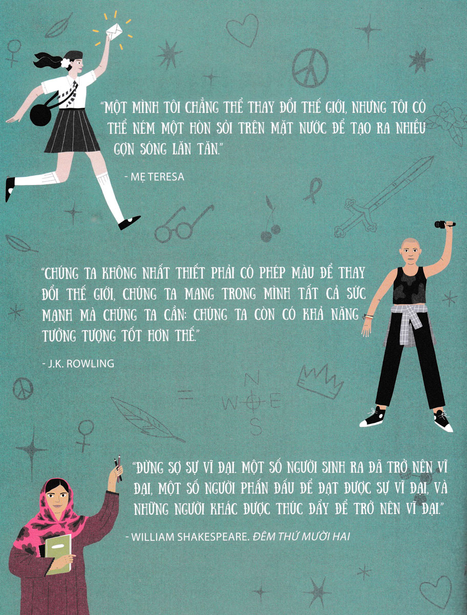 Những người phụ nữ trẻ phi thường trong cuốn sách này khác nhau ở mọi khía cạnh – nơi sinh sống, thời gian sống, địa vị xã hội. Một số người có được lợi thế từ sự ủng hộ của cha mẹ, hoặc có tài năng thiên bẩm. Những người khác đơn giản chỉ tin vào điều lớn lao hơn bản thân họ. Một số người khởi đầu với mục đích thay đổi thế giới, những người khác ngẫu nhiên làm được điều đó. Nhưng tất cả họ đều thông minh, sáng tạo, kiên cường, dũng cảm, tràn trề hy vọng, và sự tử tế. Ai trong số họ cũng phải vượt qua những trở ngại như đói nghèo, sự phân biệt giới tính, sự phân biệt ch.ủng tộc, chiến tranh, và sự ám ảnh không thể tránh khỏi của cảm giác sợ hãi.