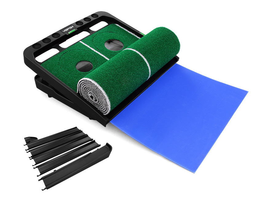 – Thảm tập có thể tùy chỉnh độ cao, độ nghiêng của hố làm tăng giảm độ khó của hố Golf. Bóng tự quay lại vị trí đánh một khi rơi xuống hố. Sản phẩm phù hợp cho cả các Golfer lâu năm cũng như Golfer mới gia nhập bộ môn này.