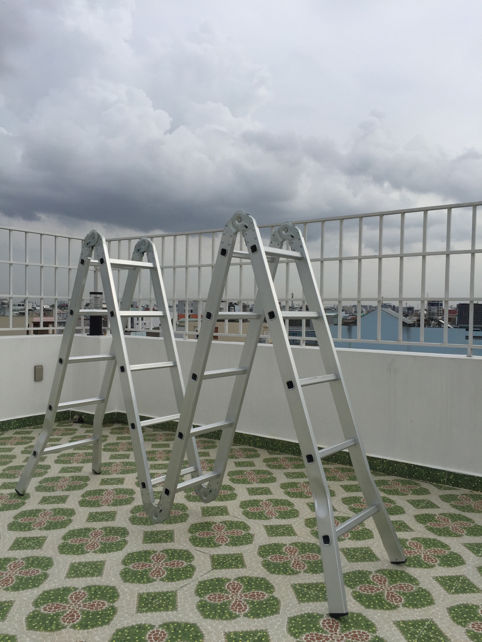 Điều đặc biệt của chiếc thang nhôm loại này chính là tính đa năng. Thang có thể biến tấu dưới nhiều hình dạng khác nhau. Trong đó, chiều cao tối đa có thể dùng lên tới 5.8m. Ngoài ra, bạn cũng có thể lắp ráp thang với nhiều hình dạng, phù hợp với từng không gian và nhu cầu công việc. Chiếc thang này cũng có thể thu gọn chỉ với một vài thao tác nhỏ giúp việc bảo quản tiết kiệm tối đa diện tích.