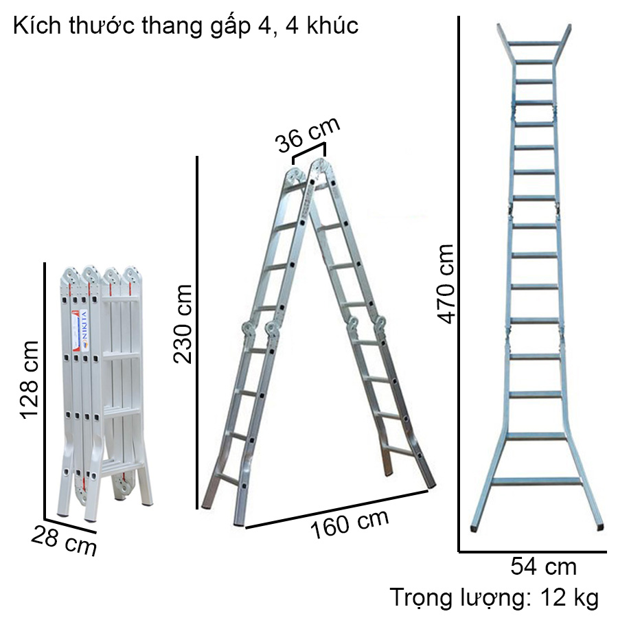 Mua tại TiktokThang nhôm gấp 4 khúc Nikita Nik44A chân choãi Thang nhôm gấp 4 khúc khóa sập tự động là loại thang được thiết kế với 4 khúc thang riêng biệt, được nối với nhau bằng hệ thống chốt khóa sập tự động và các khớp nối. Thang có thể gấp gọn lại giúp người dùng dễ dàng mang vác, di chuyển. Cấu tạo:Thang nhôm gấp 4 khúc khóa sập tự động có cấu tạo gồm các bộ phận chính sau: ️1: Bậc thang: Bậc thang được làm từ hợp kim nhôm cao cấp, có độ bền cao, chịu lực tốt. Bậc thang có chiều rộng và khoảng cách giữa các bậc phù hợp với người sử dụng, giúp người dùng leo lên xuống an toàn và thoải mái. ️2: Chốt khóa sập tự động: Chốt khóa sập tự động được làm từ hợp kim thép không gỉ, có độ bền cao. Chốt khóa tự động giúp thang được cố định chắc chắn, tránh tình trạng thang bị sập khi sử dụng. ️3: Khớp nối: Khớp nối được làm từ hợp kim thép không gỉ, có độ bền cao. Khớp nối giúp các khúc thang được nối với nhau một cách chắc chắn, đảm bảo an toàn cho người sử dụng. ️4: Chân thang: Chân thang được làm từ cao su có các rãnh chống trượt, giúp thang đứng vững trên các bề mặt không bằng phẳng. => Ưu điểm: Thang nhôm gấp 4 khúc khóa sập tự động có những ưu điểm nổi bật sau: 1: Thiết kế linh hoạt: Thang có thể gấp gọn lại giúp người dùng dễ dàng mang vác, di chuyển. Thang có thể sử dụng được ở nhiều vị trí khác nhau, phù hợp với nhiều công việc khác nhau. 2: Chất lượng cao: Thang được làm từ hợp kim nhôm cao cấp, có độ bền cao, chịu lực tốt. Chốt khóa sập tự động và khớp nối được làm từ hợp kim thép không gỉ, có độ bền cao, đảm bảo an toàn cho người sử dụng. 3: An toàn: Thang có thiết kế chắc chắn, các khớp nối được cố định chắc chắn, tránh tình trạng thang bị sập khi sử dụng. Chân thang có các rãnh chống trượt, giúp thang đứng vững trên các bề mặt không bằng phẳng. => Ứng dụng