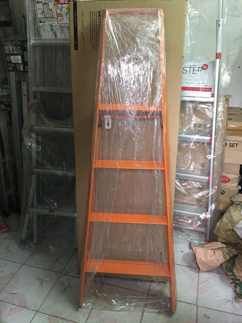 Thang nhôm LUCANO Japan 4 bậc có tay vịn màu vàng Model: ML2.0-4OR 1. Đây là loại thang đoạt giải Thiết kế đẹp nhất năm 2010 bởi Công ty  Metaphys và Hasegawa Kogyo Co., nhà sản  xuất  thang nhôm hàng  đầu của Nhật Bản từ năm 1956