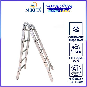 Thang nhôm Nikita NKT- NIKA20 Số lượng bậc: 6 bậc mỗi bên Chiều cao duỗi thẳng chữ I: 4 m Chiều cao chữ A : 1.9 m Trọng lượng: 7.2kg Công nghệ dập