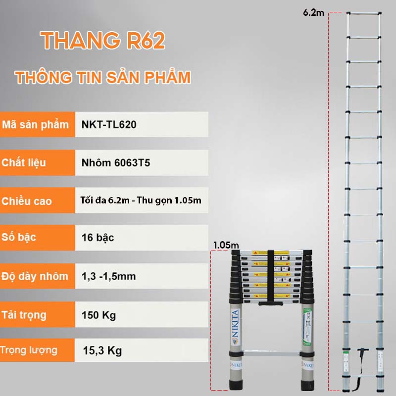 Thang rút nhôm 5m Nikita R50 chính hãng #thangnhomrut