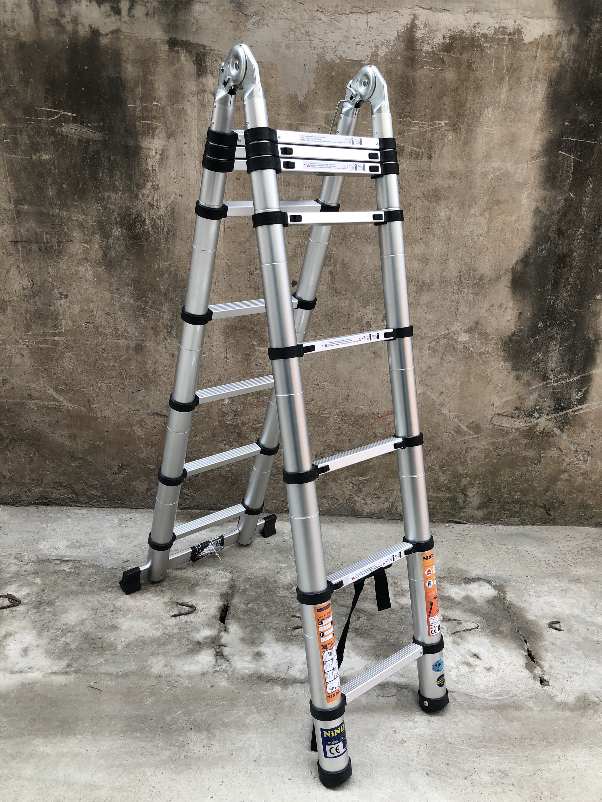 Chân thang được thiết kế các chân đế cao su bảo vệ các chân ống thang giúp chiếc thang giữ thăng bằng tốt hơn không bị méo mó ống thang cũng như bị trầy trượt sàn nhà. Ngoài ra dòng thang nhôm rút chữ A NiNDA còn được gia cố thêm 2 miếng nhựa màu đỏ được gắn ở thang ngang nhằm bảo vệ thang mỗi khi dùng có tải trọng lớn giúp thang vẫn giữu tốt tải trọng và giữ thăng bằng cực tốt