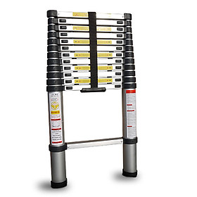 THÔNG SỐ KỸ THUẬT - Kích thước: 87x48x9 cm - Chiều cao tối đa: 3.8m - Chiều cao rút gọn: 0.81m - Số bậc: 13 bậc - Chất liệu: Hợp kim nhôm - Độ dày