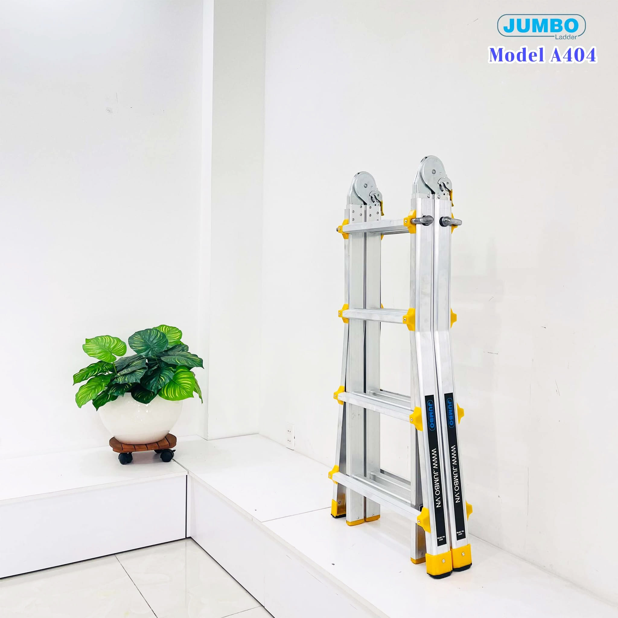 Thang Cho Thợ Điện Lạnh Giá Rẻ JUMBO A404 - Chữ A Max 1.9m, Chữ I Max 4m, Trọng Lượng Thang 9.8kg