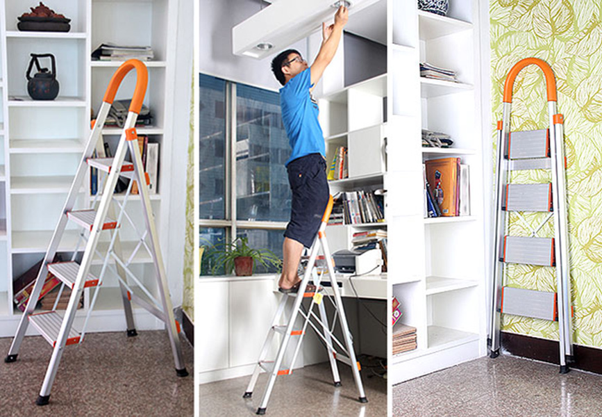 Điểm nổi bật của Thang ghế inox DIY  - Rất tiện lợi cho việc thắp hương hoặc lấy đồ trên kho, khoan thay bóng đèn. - Duỗi chân hết cỡ để thang ổn định và