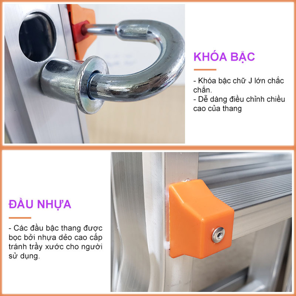 Mua tại Tiktok* Đặc điểm nổi bật: - Đạt tiêu chuẩn EN131 an toàn của Châu Âu. - Được thiết kế nhôm chống trượt. - Được sản xuất chất liệu nhôm với các bản lề, khóa an