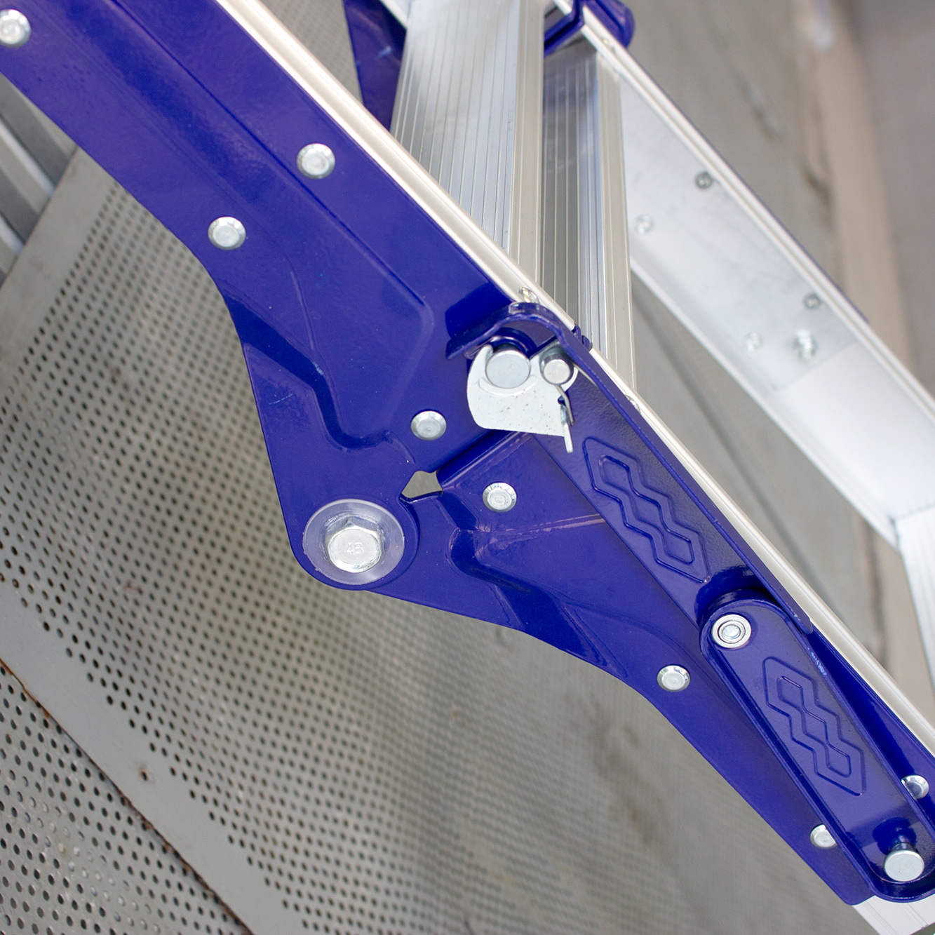- Các bậc nhôm có độ rộng lớn, thoải mái để bạn có thể đặt cả hai chân lên bậc thang mà không thấy mỏi khi làm việc lâu.