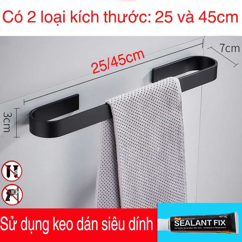 Thanh treo khăn tắm HOBBY KN1 nhôm sơn tĩnh điện dán gạch men - có 2 kích thước- 2 màu - kèm keo dán Sealant Fix Video thực tế Thông tin kỹ thuật - Chất