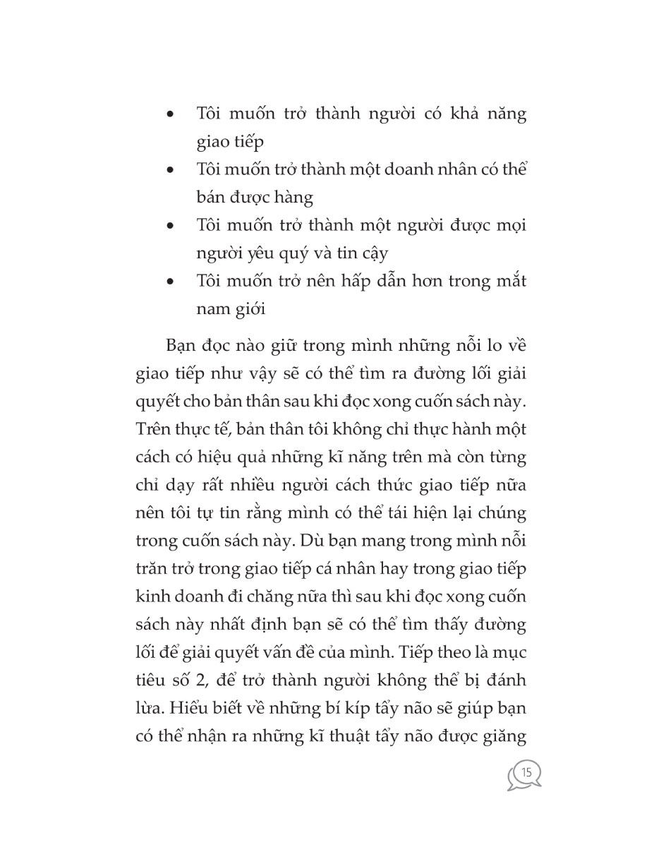 Phần đầu của cuốn sách tập trung vào việc cải thiện kỹ năng giao tiếp, giúp bạn trở thành một người tự tin, có khả năng thuyết phục và thu hút người khác. Cho dù bạn muốn trở thành một doanh nhân thành công hay một người được yêu mến trong các mối quan hệ cá nhân, sách cung cấp những chiến lược cụ thể để đạt được mục tiêu này.