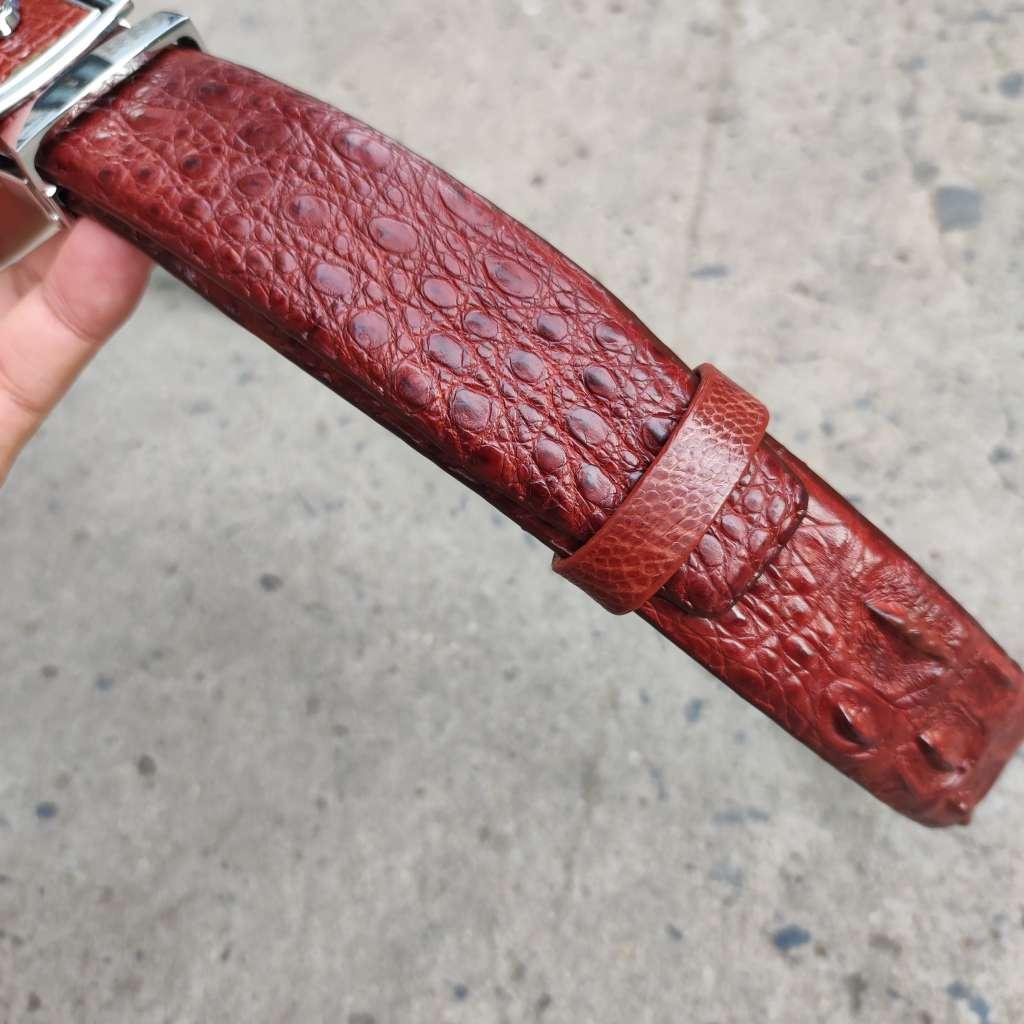 Mua tại TiktokThắt lưng được làm từ phần lưng của cá sấu lớn. Chạy từ gù xuống gai lưng qua vây rất đều và đẹp, kết hợp da bụng phần cuối dây giúp dễ dàng sử dụng.