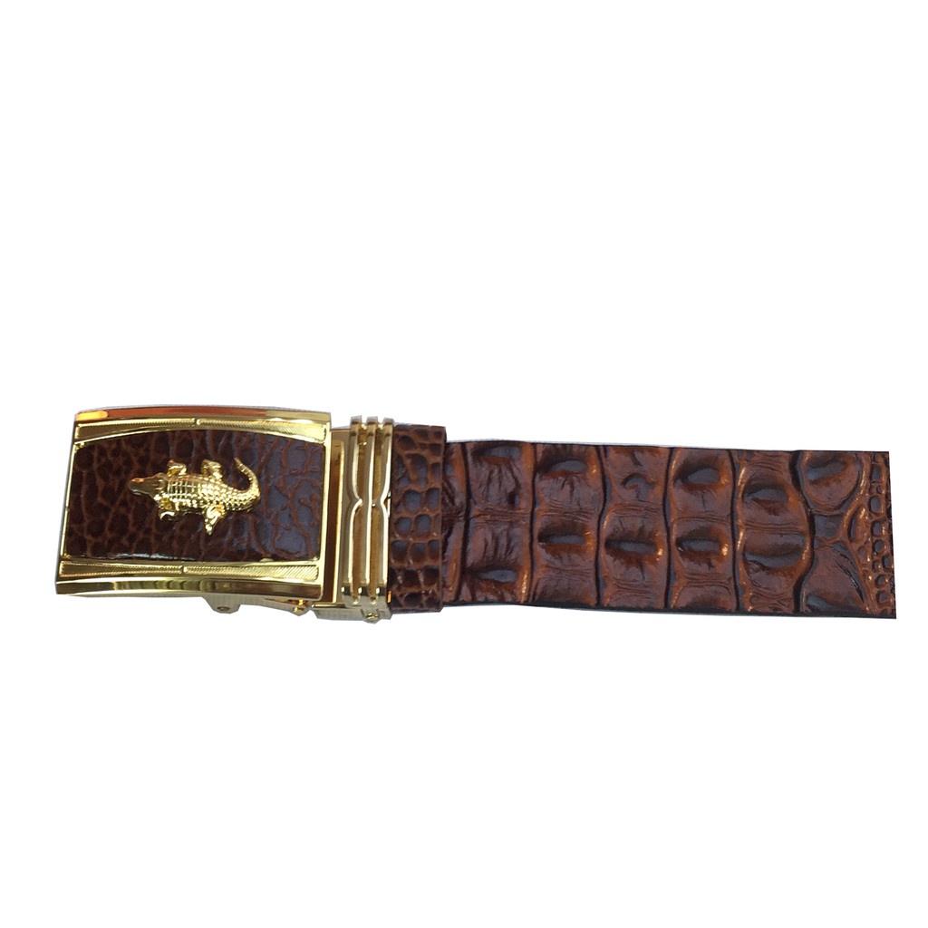 Thắt lưng nam da thật mặt khóa tự động bằng thép sáng bóng không gỉ