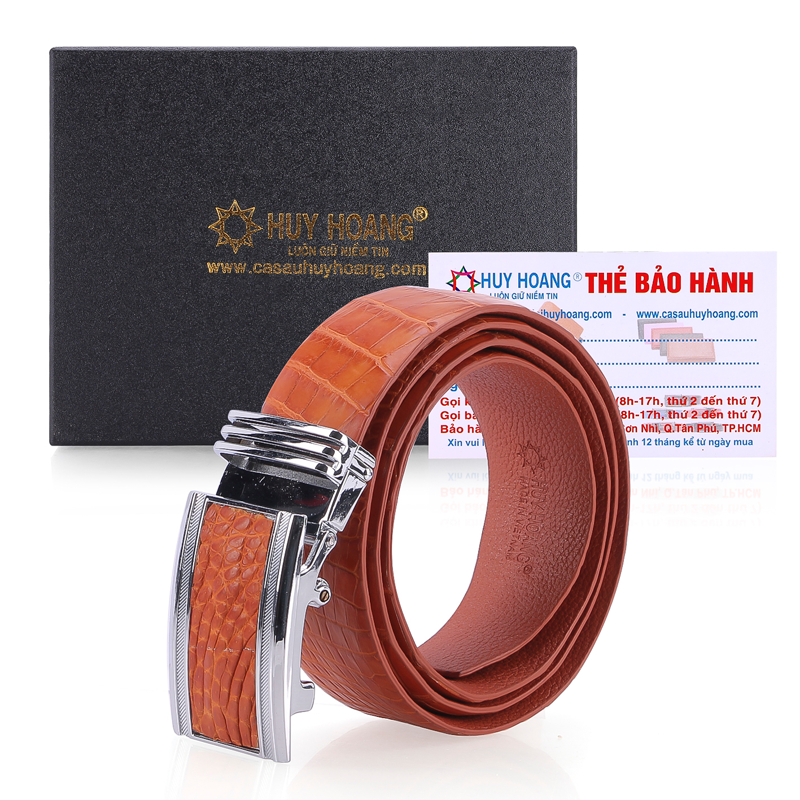 01 x Dây nịt nam Huy Hoàng 01 x Thẻ bảo hành 12 tháng (bảo hành da, bung keo, súc chỉ)