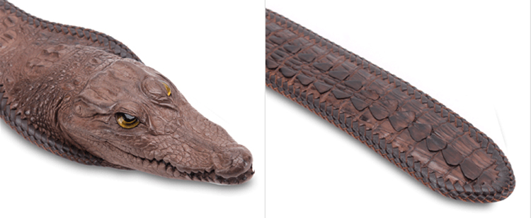 • Chất liệu: Da cá sấu thật 100%.