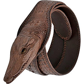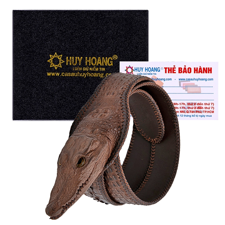 ✨Thắt Lưng Nam Da Cá Sấu Nguyên Con Lớn Đầu Cá Sấu Huy Hoàng HT4232 - Nâu Đất
