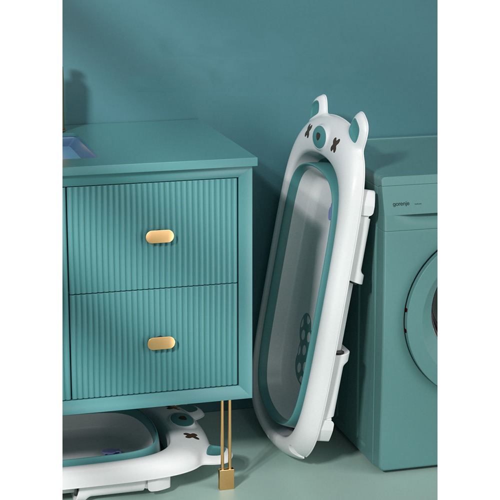 - Thau tắm em bé có ba màu xanh, đỏ, cam - Thau được được thiết kế khớp để gập với diện tích 81.7cm x 9.2cm, xếp gọn gàng trong ngôi nhà bạn - Kích