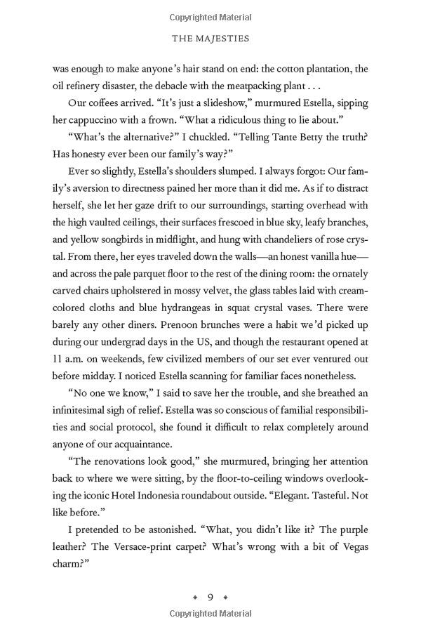 Journeying from the luxurious world of the rich and powerful in Indonesia to the spectacular shows of Paris Fashion Week, from the sunny coasts of California to the melting pot of Melbourne's university scene, The Majesties is a haunting and deeply suspenseful novel about the dark secrets that can build a family empire - and also bring it crashing down.