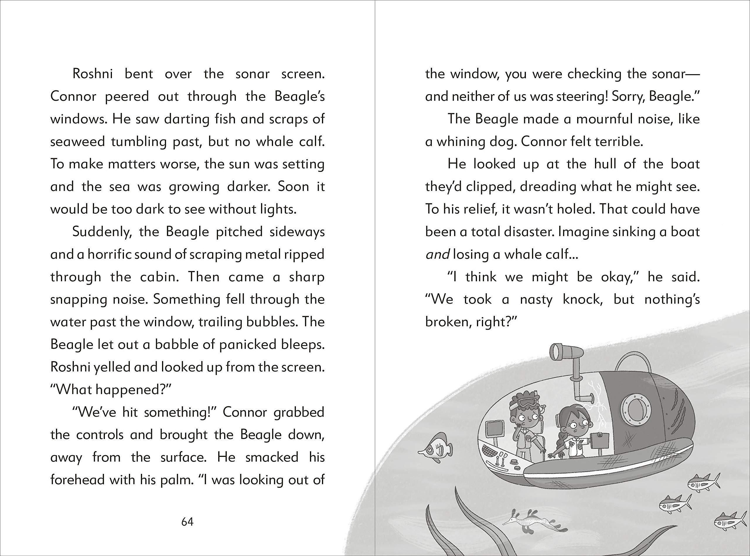 In The Lost Whales, marine life expert Connor needs to use his underwater expertise to help save a pod of humpback whales that have lost their way. Along with space expert Roshni, he sets out in a submarine to search for a way to steer the whales back on track, but encounters unexpected problems along the way, including lost baby whales and a fleet of boats. Will The Secret Explorers manage to succeed in their mission? Packed with fun illustrations and facts about humpback whales, marine life, and how climate change is affecting the oceans, this thrilling adventure is perfect for emerging readers. The action-packed narrative keeps kids engaged and makes learning about the natural world fun.
