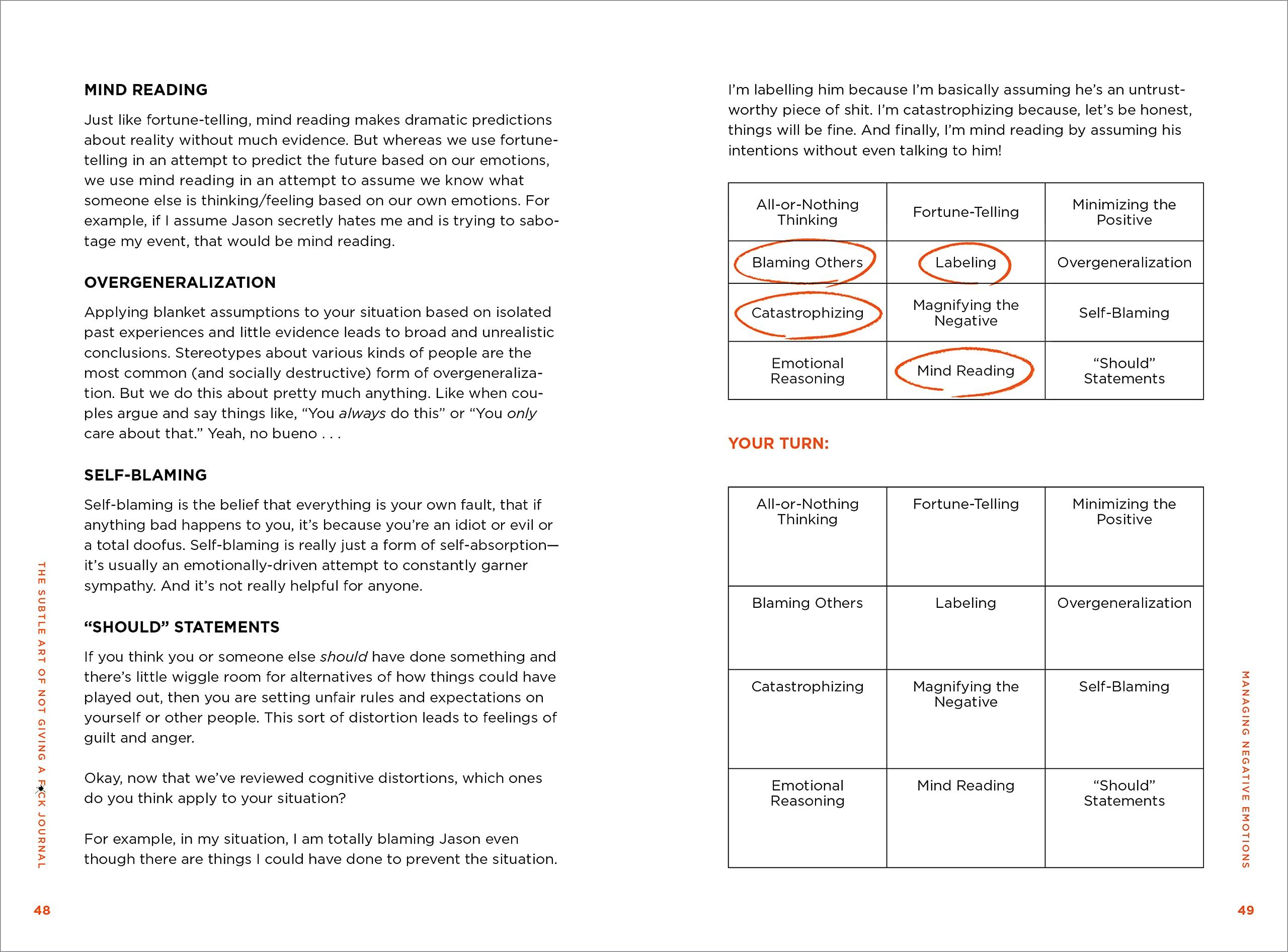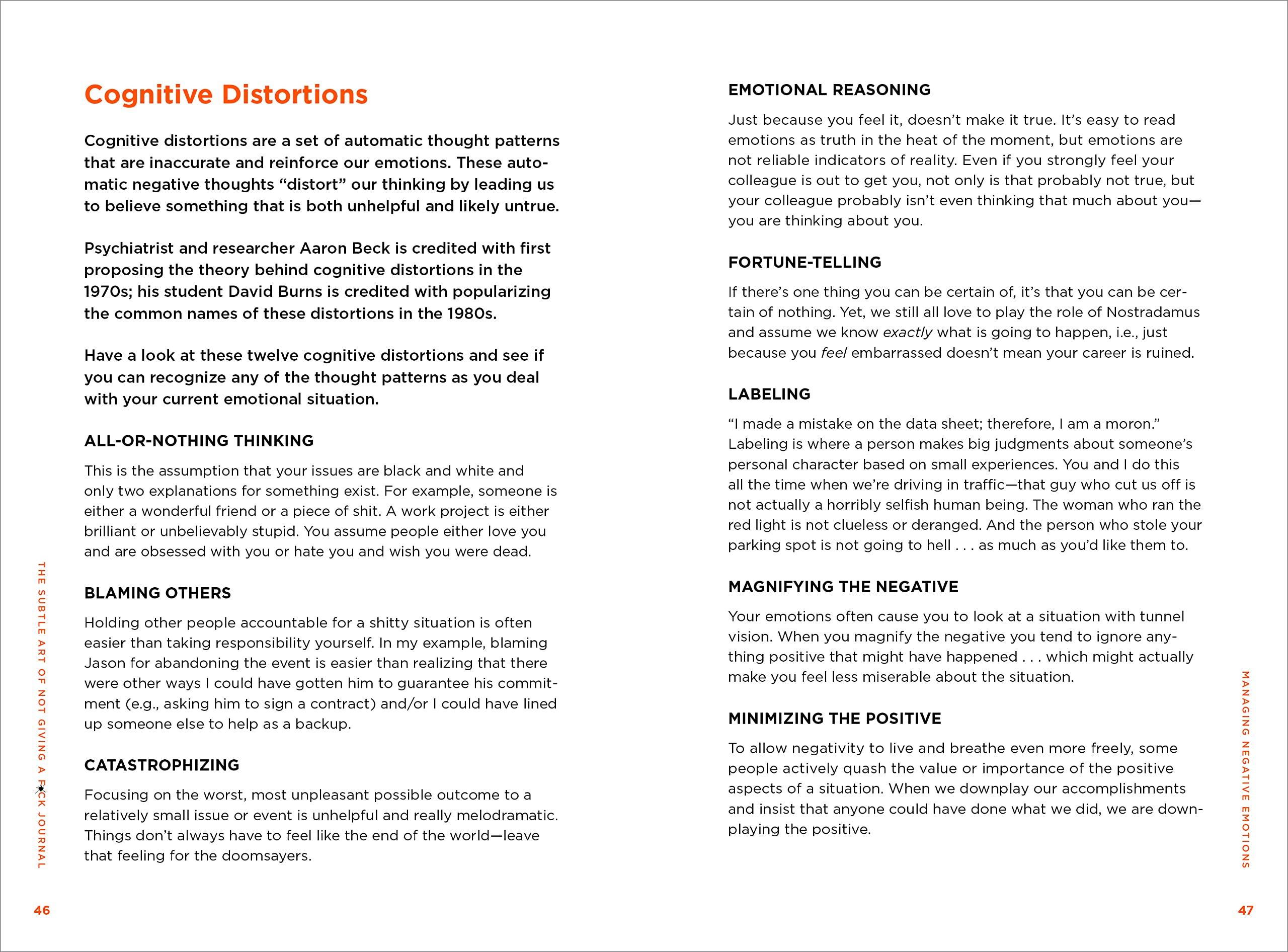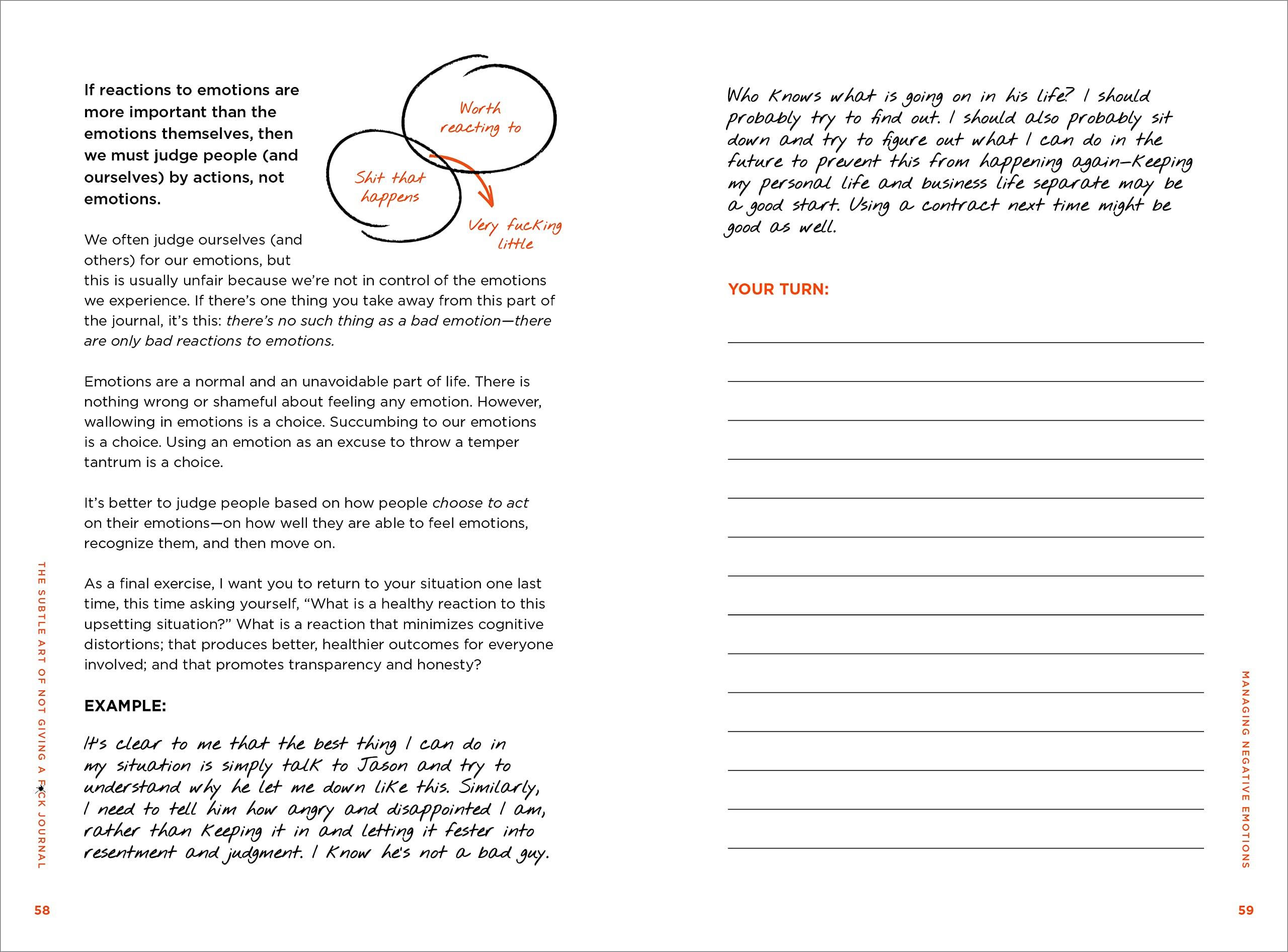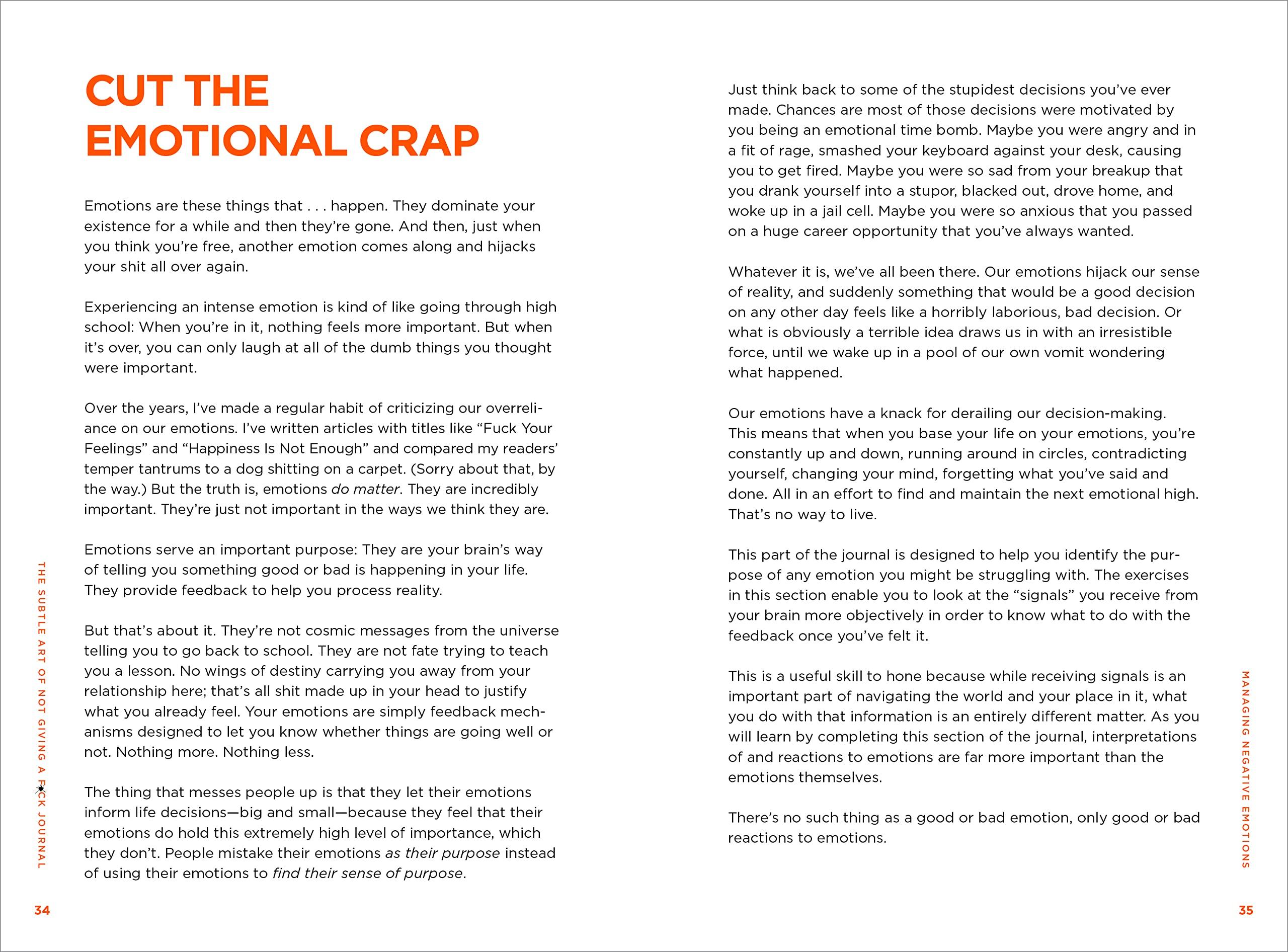 In classic Mark Manson style, this journal isn’t a “once a day” or “once a week” thing. You can use it any time. Or not. Leave it and come back. Or not.