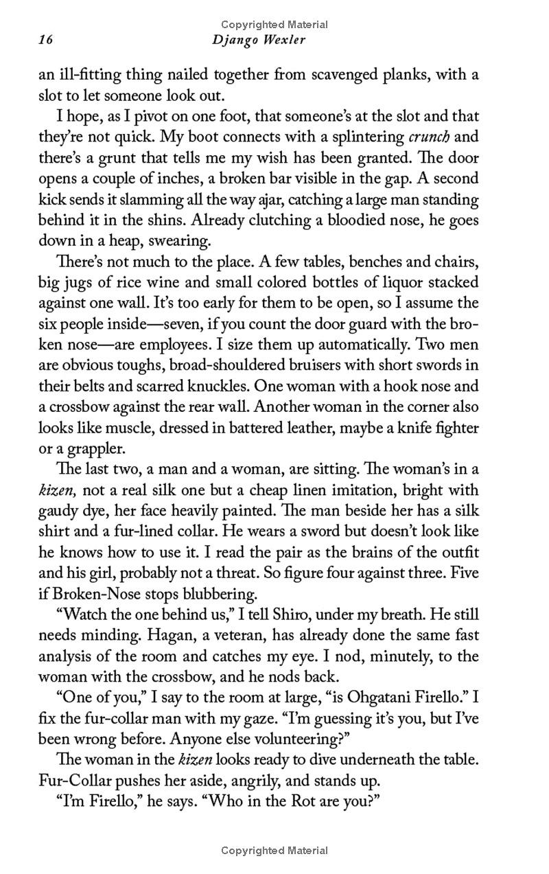 In the lower wards of Kahnzoka, the great port city of the Blessed Empire, eighteen-year-old ward boss Isoka enforces the will of her criminal masters with the power of Melos, the Well of Combat. The money she collects goes to keep her little sister living in comfort, far from the bloody streets they grew up on.