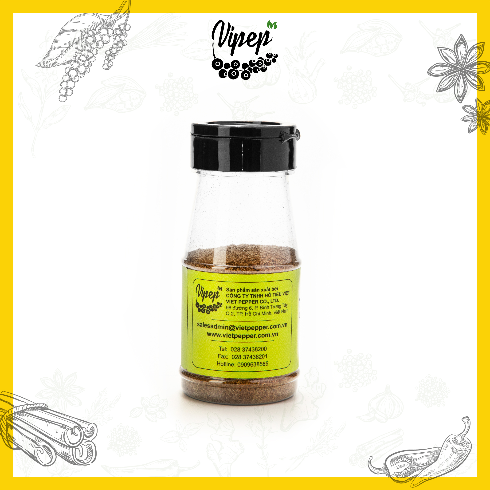 1. THÔNG TIN SẢN PHẨM - Thành phần: Bột quế (35%), bột đinh hương (32%), đại hồi, hạt điều màu, bột nghệ, bột ớt khô, hoa tiêu, thảo quả. - Quy cách: 5g/gói (50 gói/lốc)