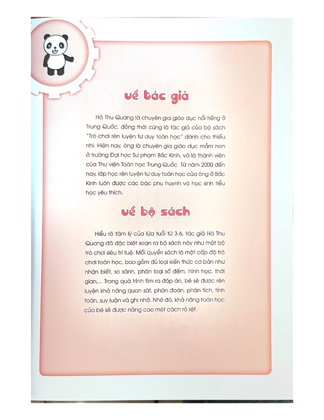 Bộ sách giúp trẻ biết so sánh, phân loại đồ vật, nhận biết các dạng hình học, không gian, thời gian, các con số và phép tính. Trẻ sẽ được gợi mở tiềm năng trí tuệ một cách tự nhiên nhất thông qua các bài tập với nhiều hình ảnh các con vật đáng yêu, trái cây giàu màu sắc, vật dụng quen thuộc hàng ngày,... Các bậc phụ huynh sẽ không khỏi ngạc nhiên khi thấy các bé làm bài tập hoài mà không biết chán!