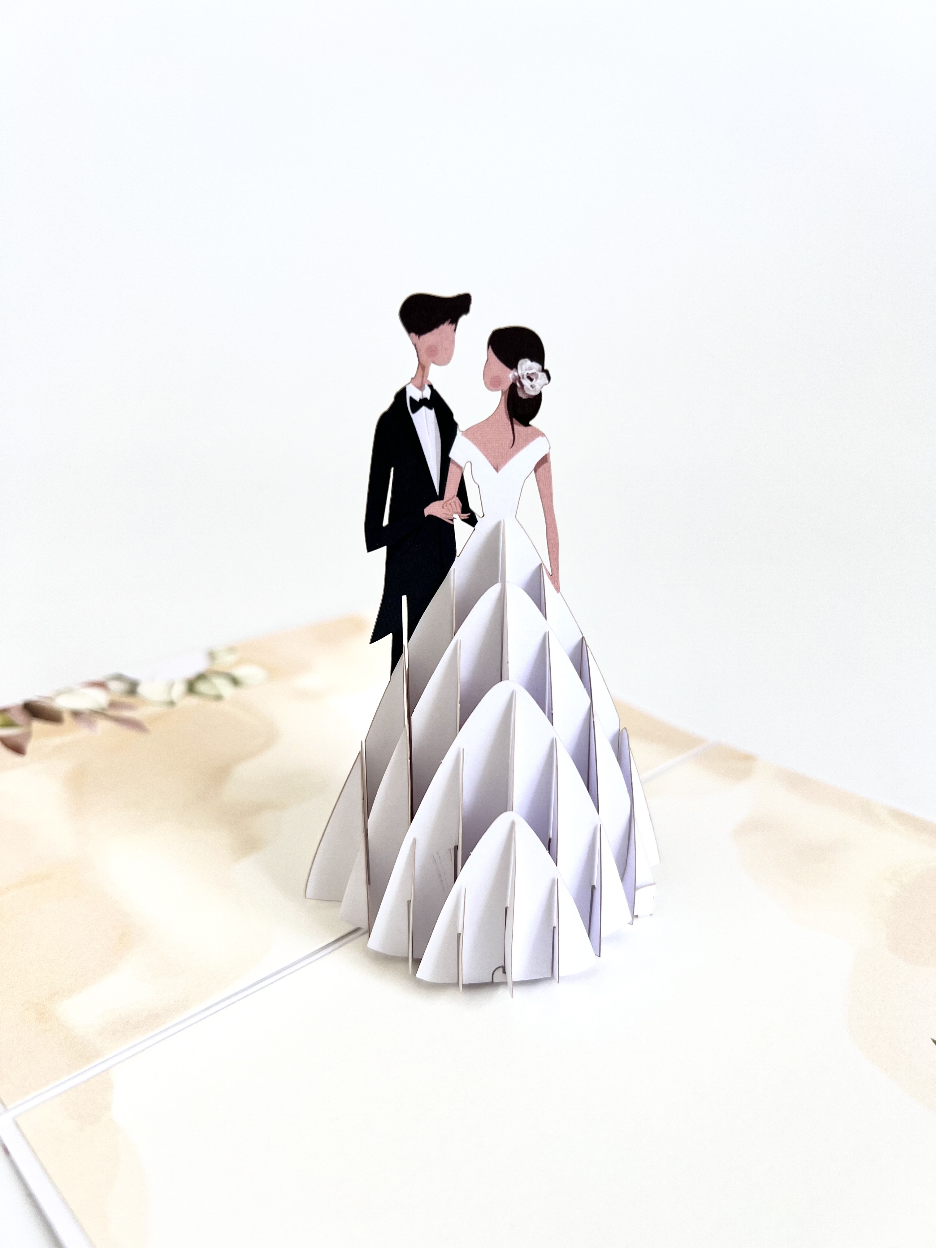 ✨Thiệp 3D Pop Up Cô Dâu Váy Trắng & Chú Rể – Thiệp Cưới, Thiệp Chúc Mừng Đám Cưới Sang Trọng, W12